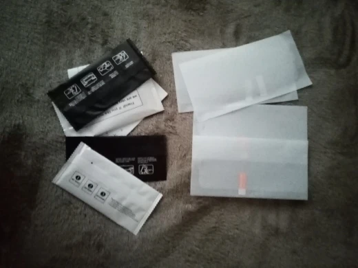Пришло 2 плёнки, полный комплект со стикаии для удаления пылинок. Так же инструкция по установке на русском языке. Рекомендую. От стекла чувства другие плёнка будет лучше