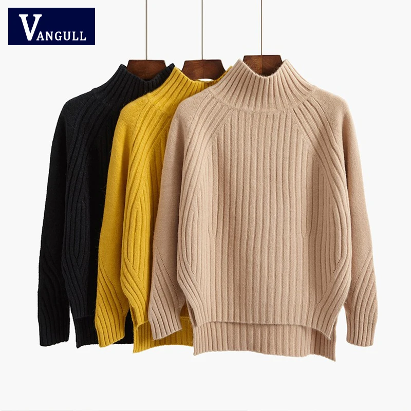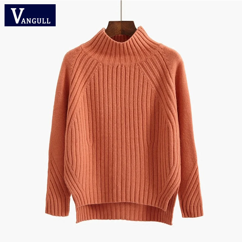 Женский однотонный пуловер-водолазка Vangull, повседневный базовый вязаный свитер на осень и зиму, простой свободный свитер с длинным рукавом