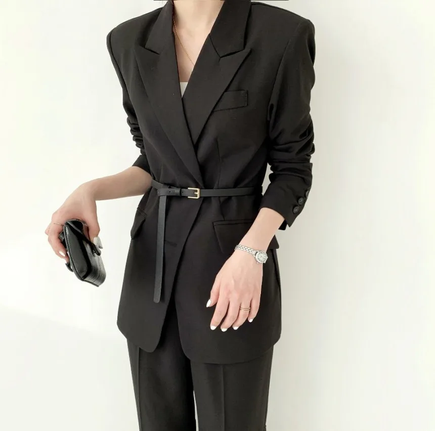 HziriP ПР Повседневная обувь однотонные минималистский Блейзер, Женское пальто 2021 Новый Осень Элегантный шик свободный костюм Джек Женский блейзер с поясом