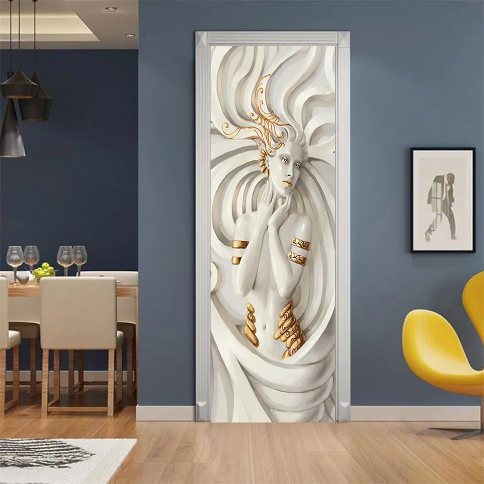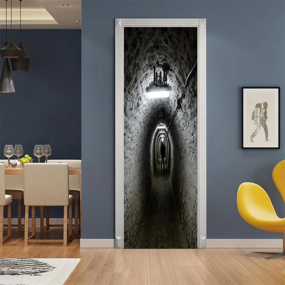 Деревянная клейкая водонепроницаемая 3D дверная наклейка, домашний декор, обои для дверей, гостиной, спальни, Постер, сделай сам, роспись, наклейки, наклейка