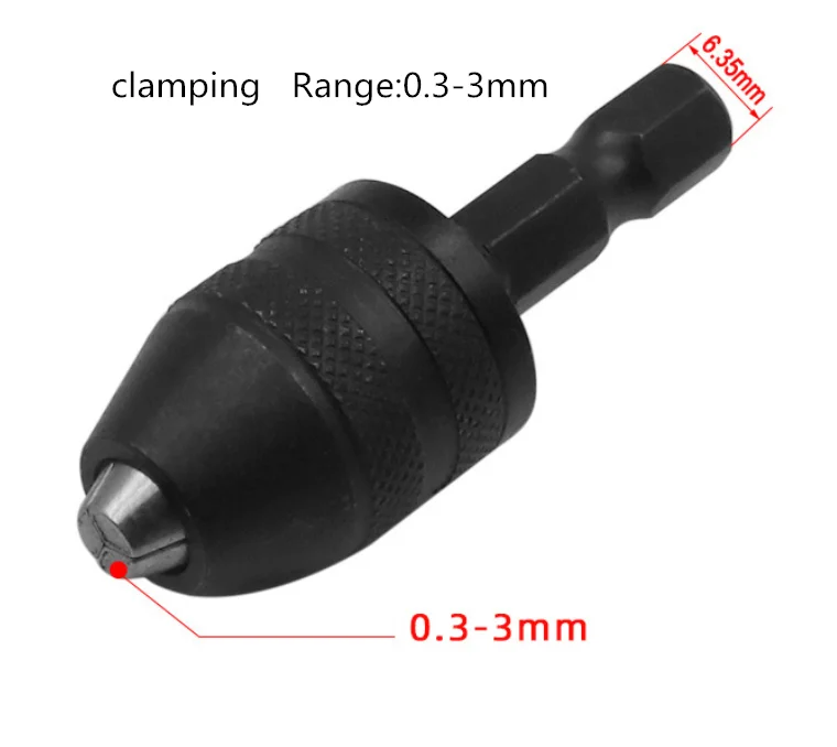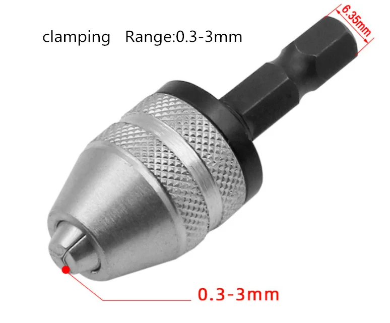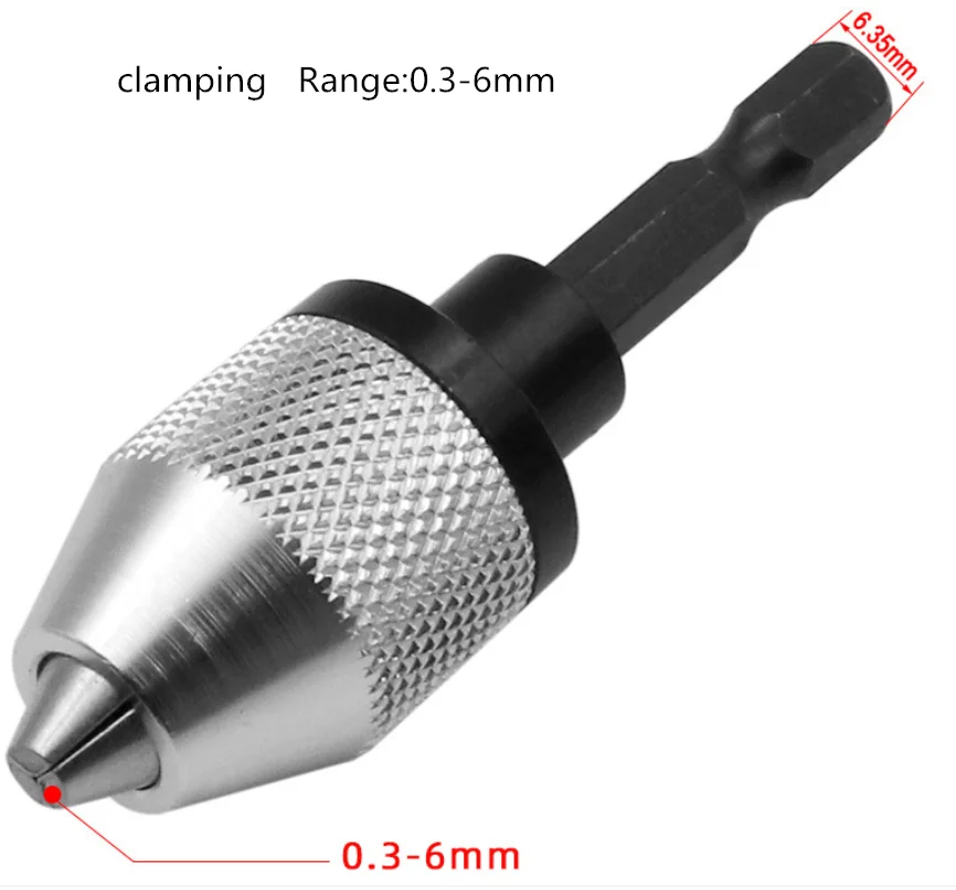 Тип: сверлильный патрон без ключаДиаметр сверлильного патрона: 0,3-8 ммХвостовик: 1/4 "шестигранный хвостовикОсобенности1. БЕСКЛЮЧЕВОЙ патрон палец-подтягивает для легкого изменения бит-не требуется ключ патрона2. Шестигранный хвостовик 1/4 дюйма легко вставляется в драйвер сверла3. Быстрое изменение, легко фиксирует и выпускает сверла для быстрого переключения задач и сохранения работы4. Грипсы сверхтонких биты из 0,3 мм до 8 ммСоветыДиапазон применения: подходит для электрической шлифовальной машины и электрической дрели мощностью менее 700 ВтУпаковка включает в себя1X1/4 "шестигранный хвостовик сверлильный патрон