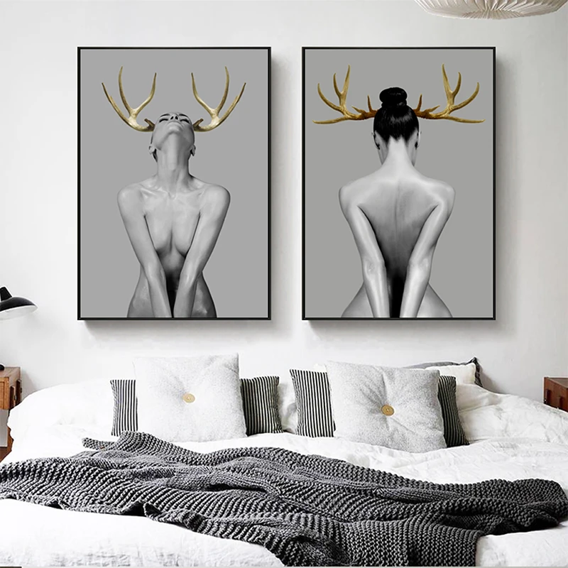 Современный простой модный сексуальный золотистый фотографический постер с художественной печатью Настенный декор для спальни гостиной дома