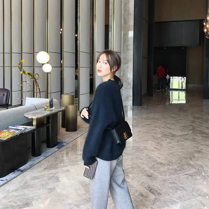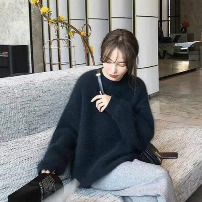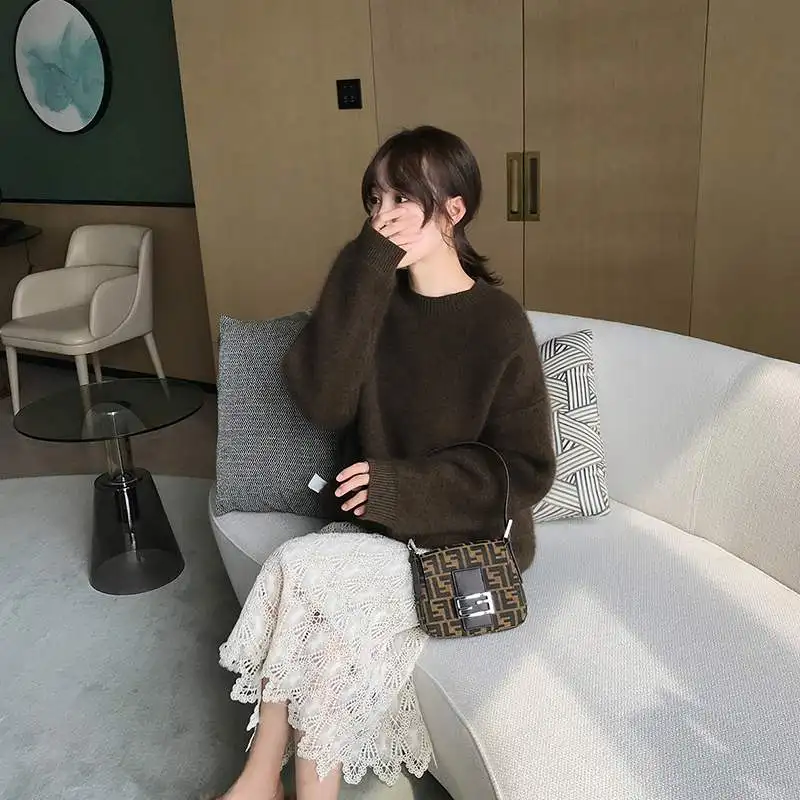 Женский кашемировый свитер с длинным рукавом, с круглым вырезом
