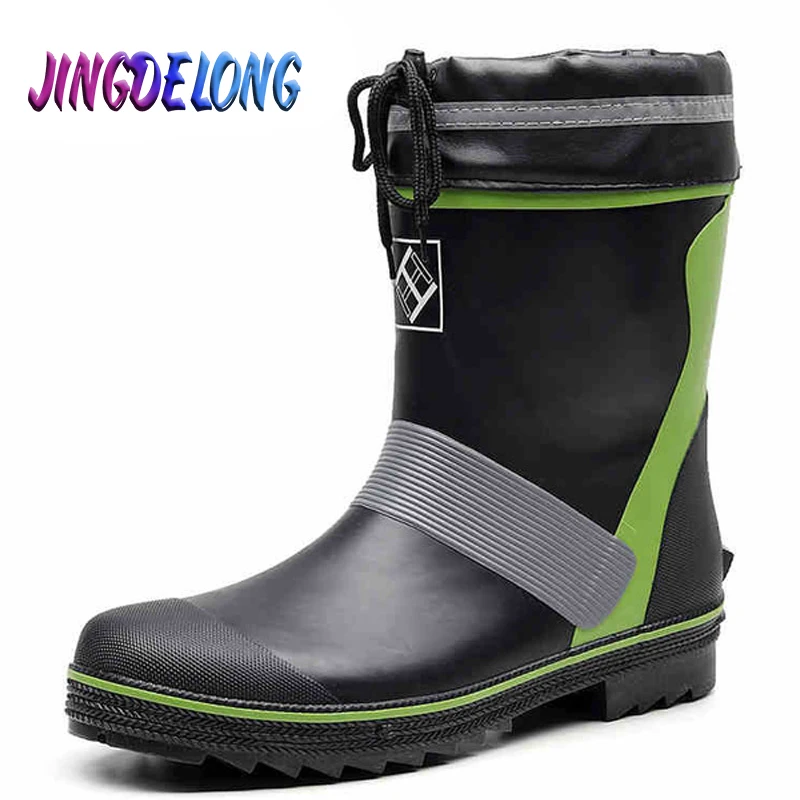 Мужские резиновые сапоги, до середины икры, водонепроницаемая Уличная обувь, Резиновая, для рыбалки, брендовые, 2020