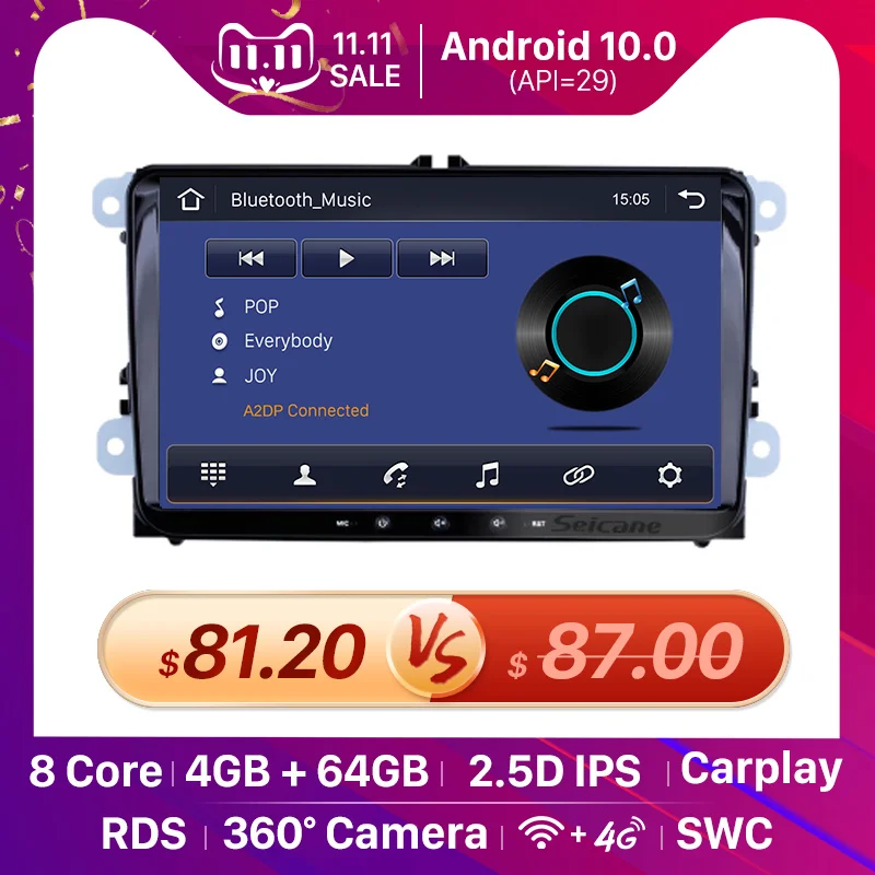 Seicane 2dinRAM 2GB ROM 32GBAndroid 9,1/9,0 GPS 9-дюймовый автомобильный мультимедийный плеерДля Skoda/Seat/Volkswagen/VW/Passat b7/POLO/GOLF 5 6