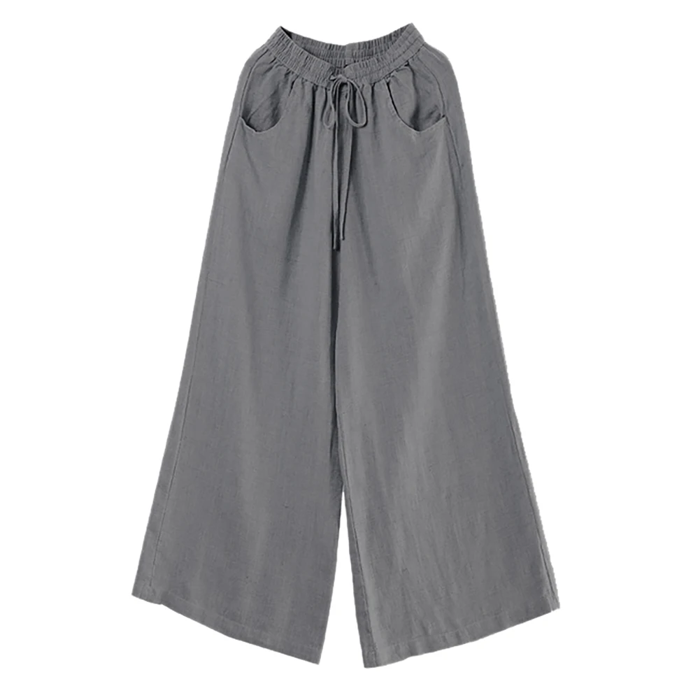 Женские свободные брюки в винтажном стиле Брюки женские прямые из хлопка и льна с высокой талией
