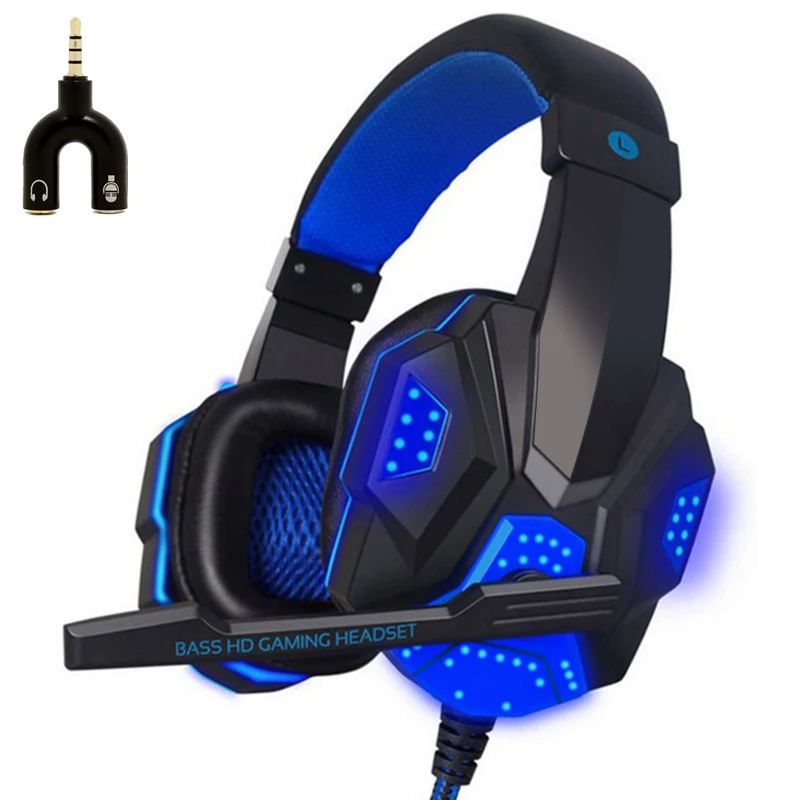 Игровая гарнитура с микрофоном светодиодный светильник кой 3,5 мм Проводные шумоизоляционные Игровые наушники с регулятором громкости