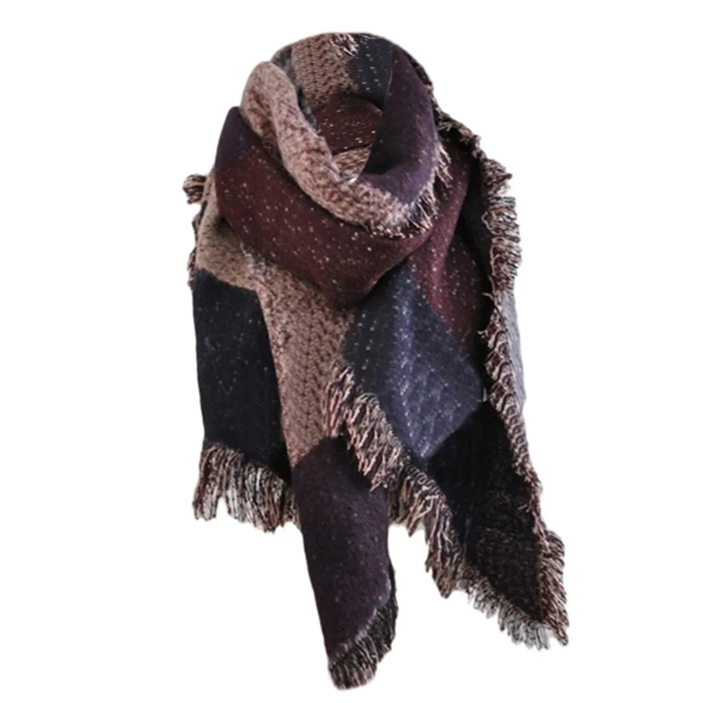 Осень-зима 2020, теплые шарфы для женщин, контрастный цвет, шарф с кисточками, Ретро стиль, женская многоцелевая шаль, шарф, bufanda mujer FN60