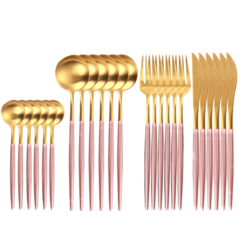 Набор столовых приборов золотистого вилки, ножи, ложки 1810 Нержавеющаясталь ужин набор посуды, столовая ложка, вилка, Ножи палочки дозирующая детская ложка для дропшоппинг
