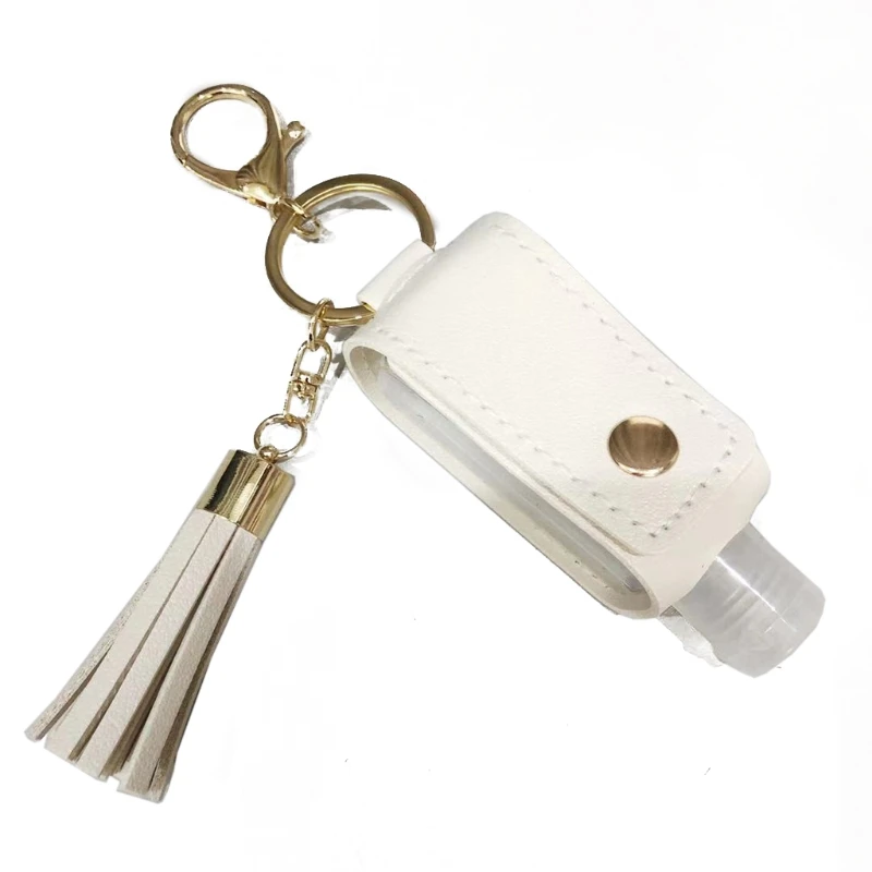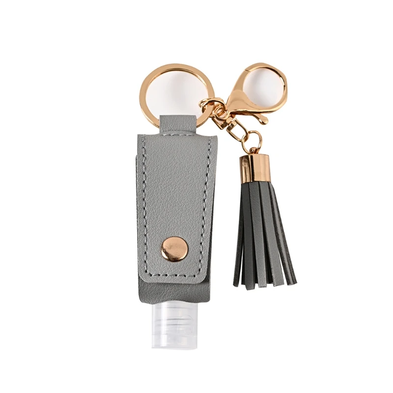 30 мл портативная пустая герметичная пластиковая дорожная бутылка для дезинфицирующего средства для рук с кисточками, кожаный держатель для ключей