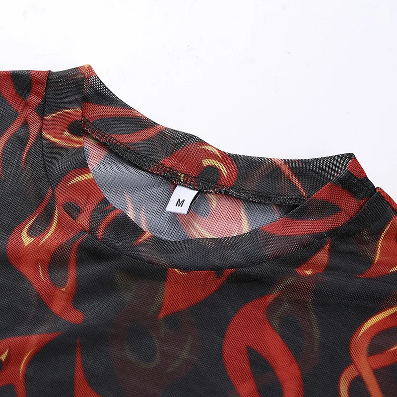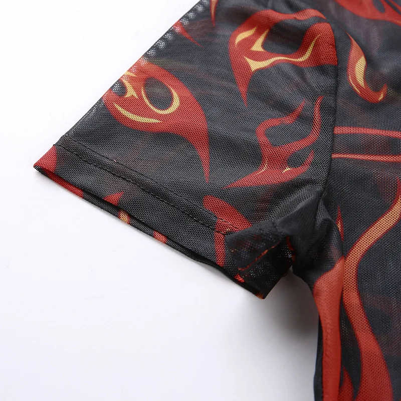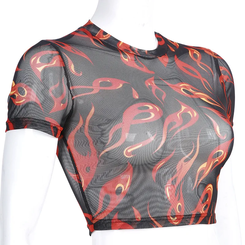 Женский укороченный топ с принтом Angel Flame, прозрачная Сетчатая футболка с коротким рукавом и круглым вырезом, уличная одежда, Летний сезон