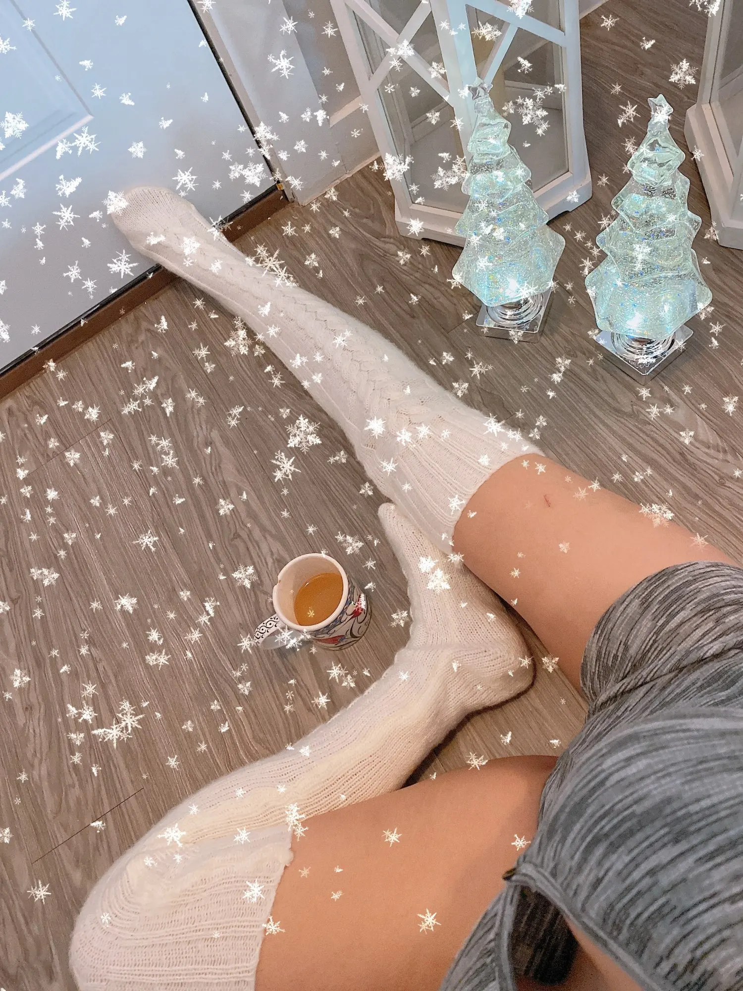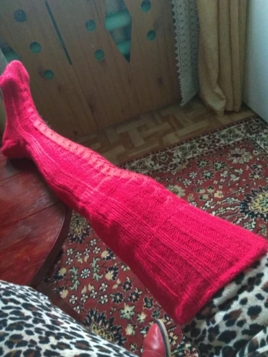 Пухнасті, товсті, приємні на дотик панчохи, правда розраховані більш ніж на 39-40 розмір. На холодну зиму в самий раз, правда нитка зверху надто туга, сильно перетискає ногу.