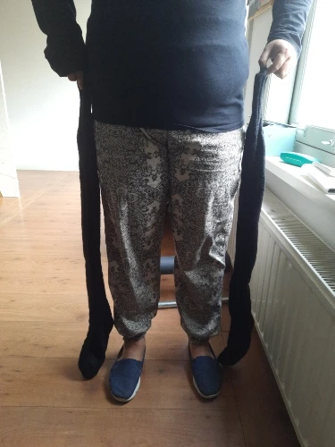 Как в описании. Немного туго для этих ног, более chaiinhas. Немного выше колена, но не достаточно до бедра.