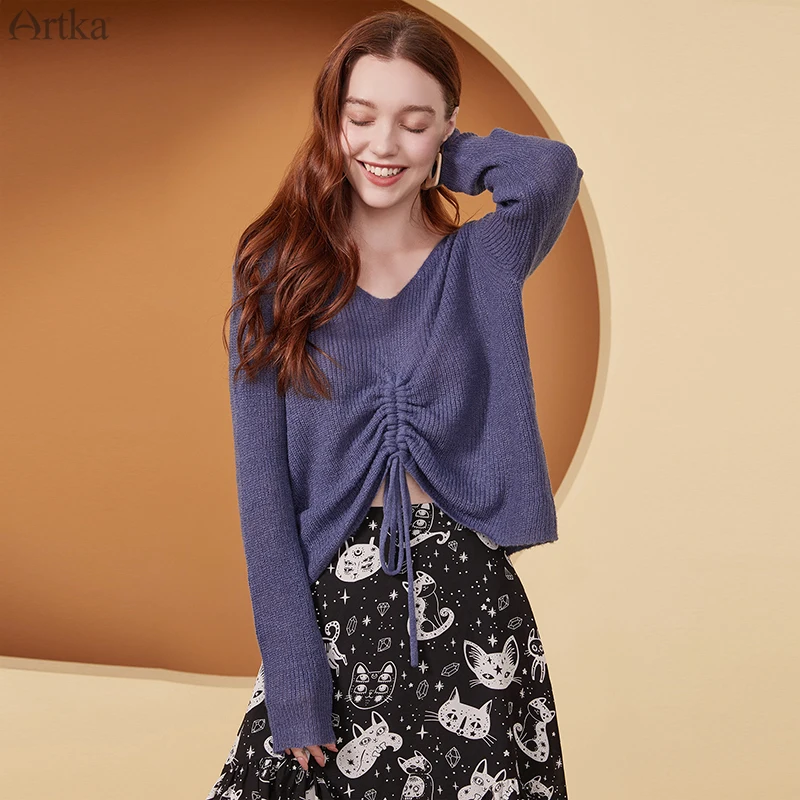 ARTKA 2020 осенний Новый женский свитер 6 цветов Элегантный шерстяной трикотаж с V-образным вырезом свободный мягкий шерстяные трикотажные свитера YB25201Q