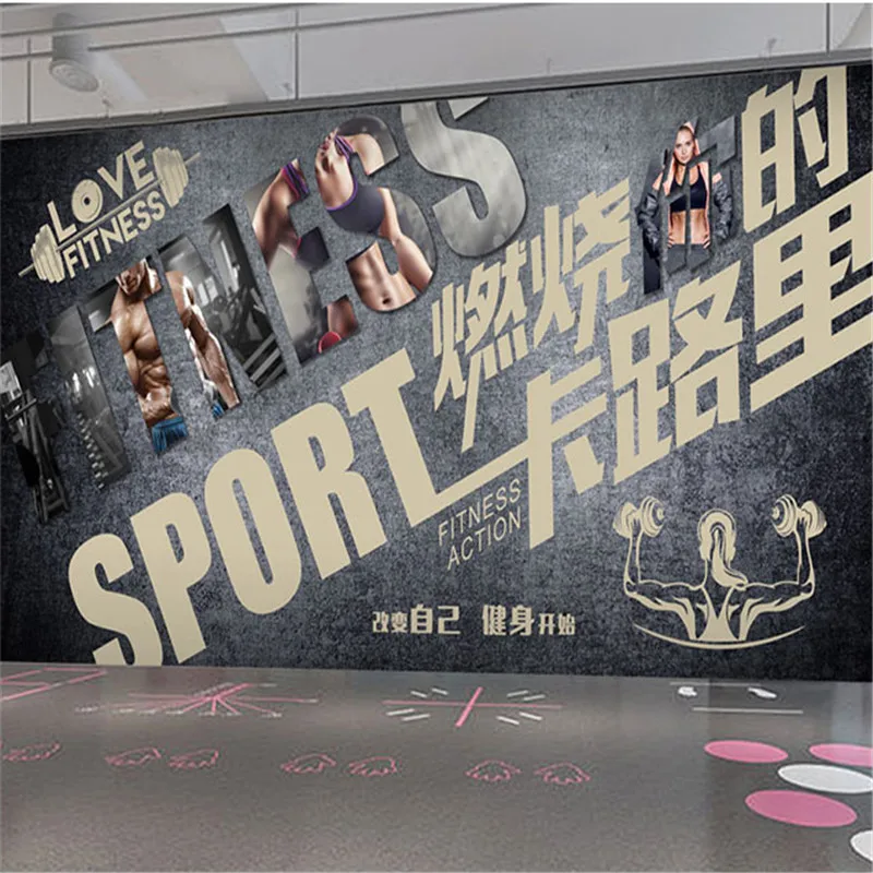 Индивидуальная Спортивная настенная бумага для фитнеса на заказ, настенные фрески, промышленный декор для зала, настенная бумага, 3D фон