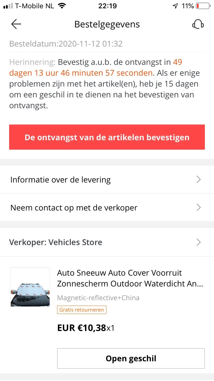 12-11-2020 по четвергам. Сегодня 07-12-2020 с понедельника получены. Быстрая Доставка в течение 25 дней от Китая до Роттердамской-Южной Нидерландов. Из-за толпы людей по PostNL дополнительное время ожидания, на самом деле, я должен получить посылку на следующей неделе 30-11-2020, если я получил, но PostNL каждый день менял срок доставки, поэтому через 7 дней получил. Состояние товара упаковано аккуратно и счастливо без получения beschadigden. Но я не был протестирован. Когда я был протестирован, я оставляю еще один отзыв с фотографиями. ! Обратите внимание на людей из Нидерландов! Этот период с длительным сроком ожидания доставки в PostNL. Они так заняты. Таким образом, вы всегда будете следить за PostNL, всегда проверяйте с помощью PostNL App или PostNL Track & trace Site.