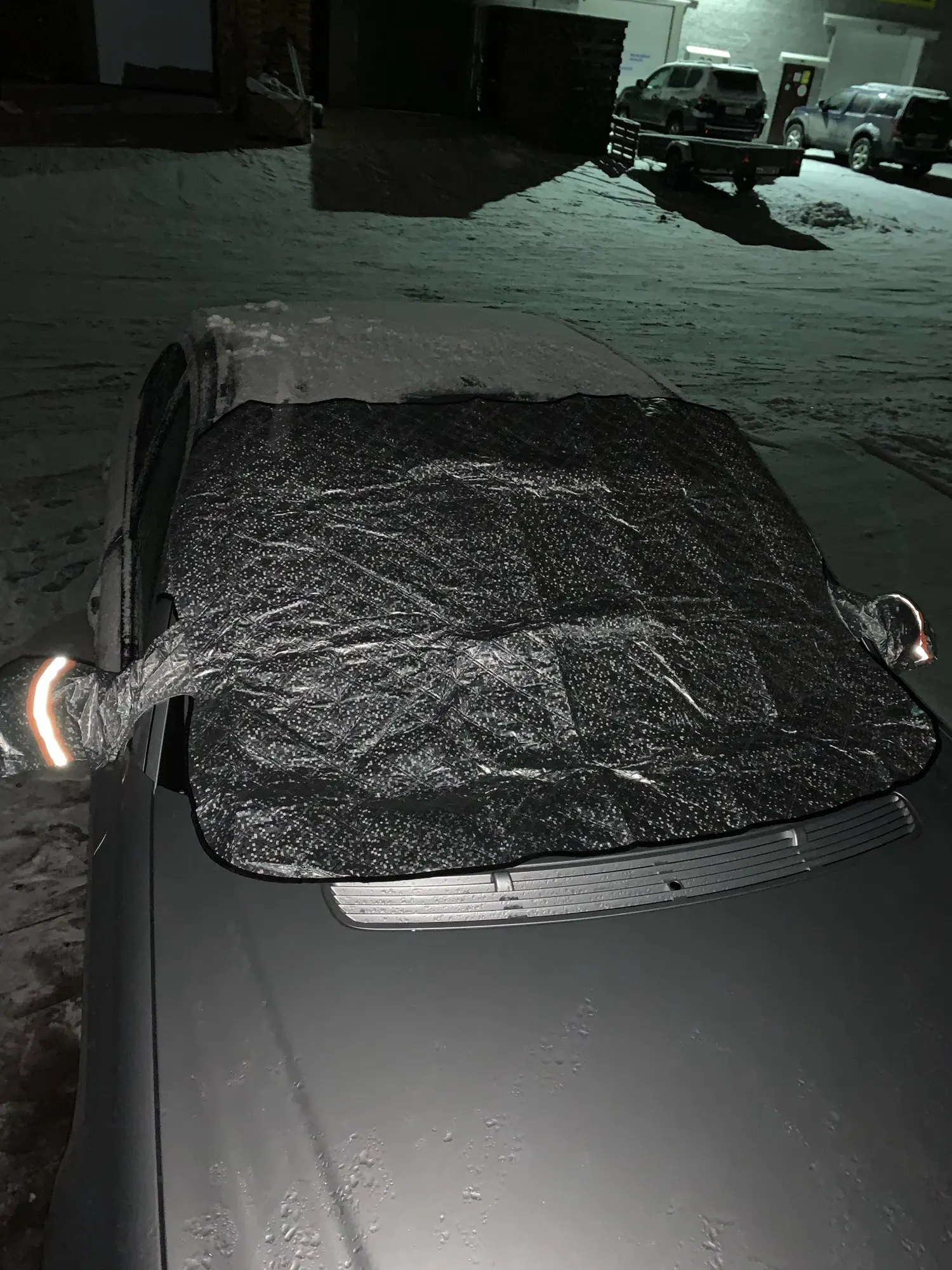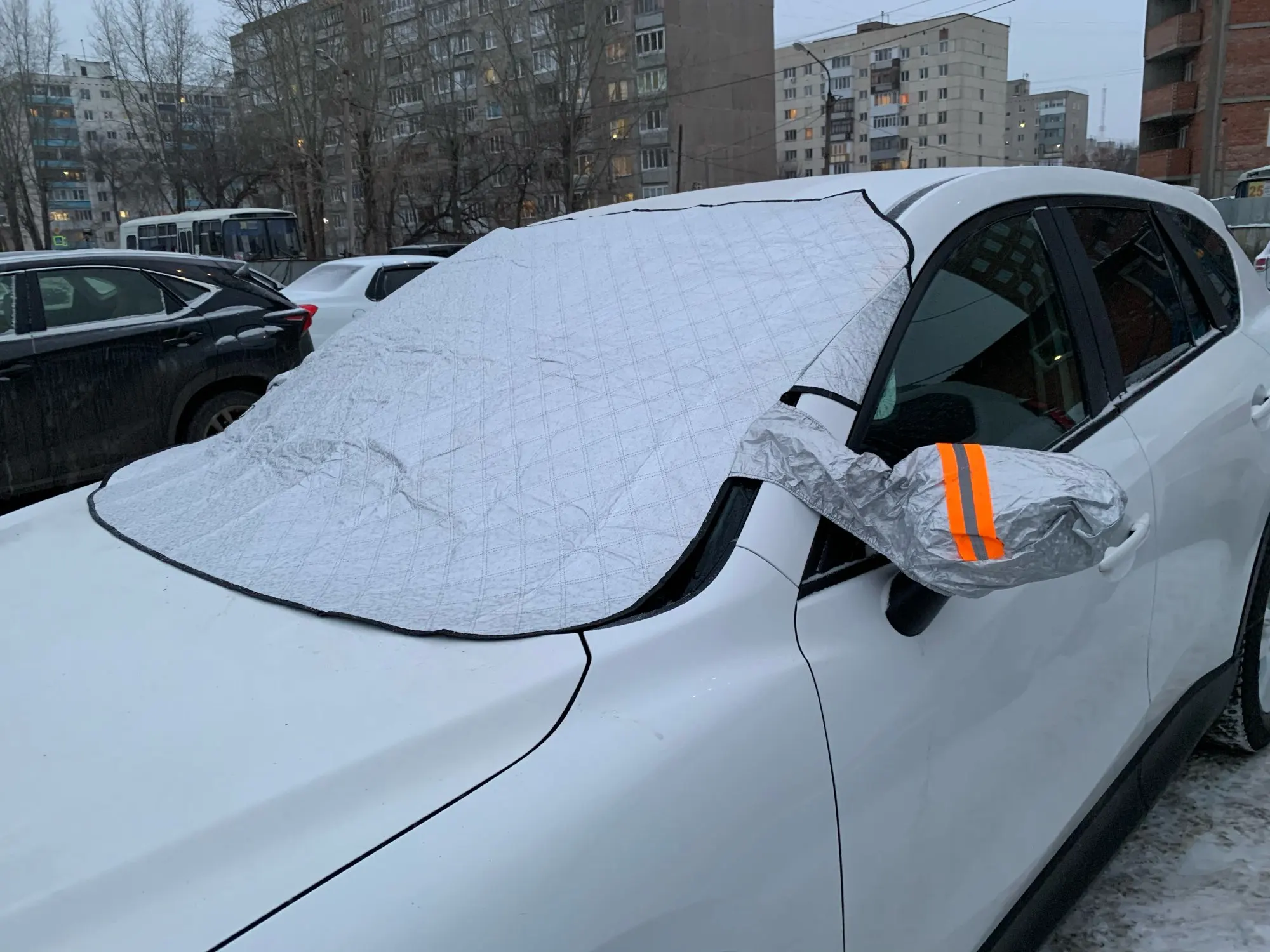 Все вполне прилично, на Lexus RX одевается нормально. Магнитики, которые вшиты в чехол очень малы, не уверен что удержат что-то от сильного ветра, но сам чехол имеет отвороты, для закрепления их к передним дверям, ну и мини чехлы на зеркала тоже помогут удержать от ветра. Естественно чехлы нужны владельцам, у которых авто стоит во дворе своего дома или на охраняемой стоянке, в противном случае, чехол просто спи$ (стащят).