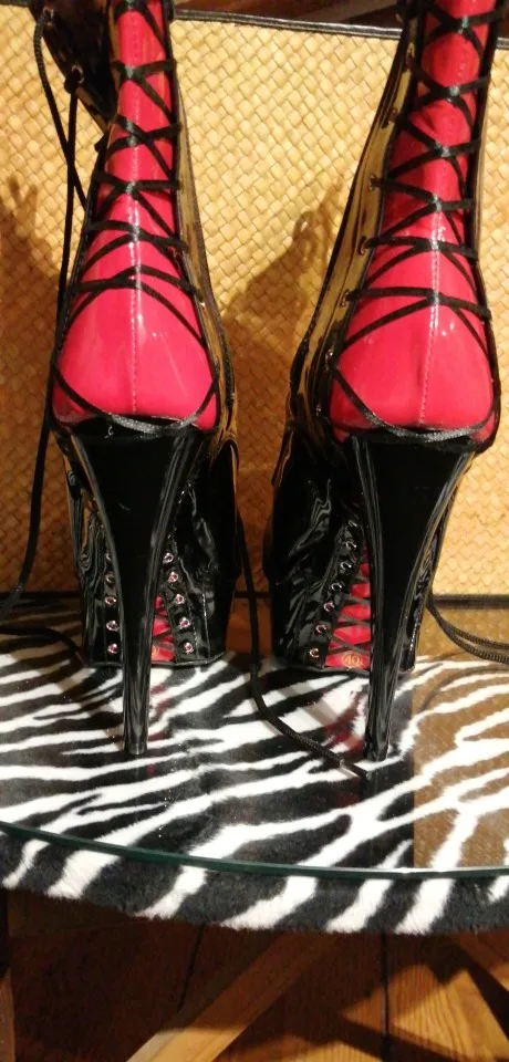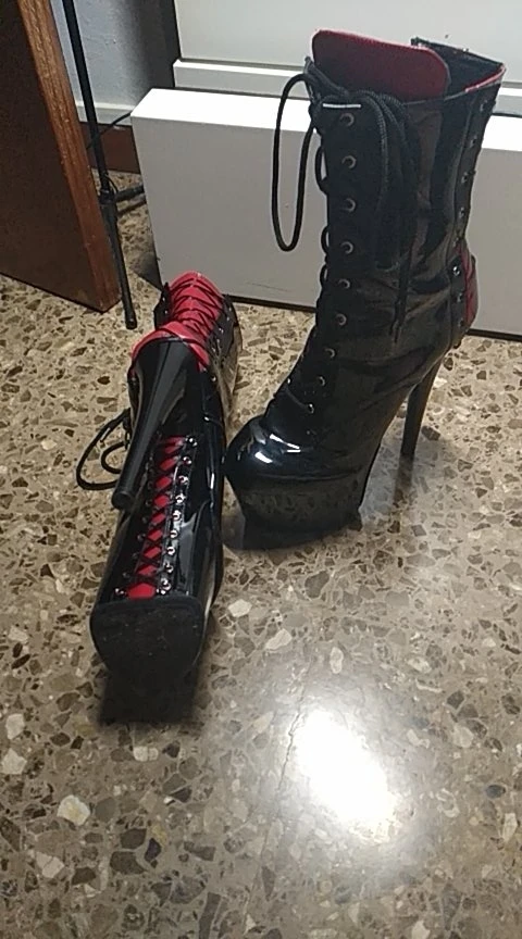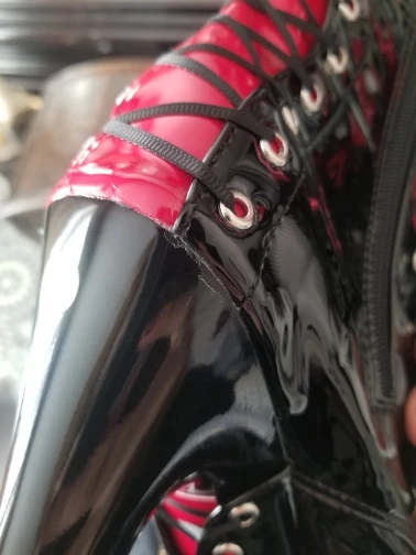 Это произошло очень быстро, я заказал размер 40, и он немного большой, но эй, это экономно. Я бы посоветовал заказать на один размер меньше, я думаю, что 39 было бы лучше для меня. Качество сапог плохое, я делаю шары, как будто у меня большие волосы, и они чистые пластиковые, но у него Красивая отделка с помощью рулона корсета и красного на подошве. Он поставляется с шнурками и при ношении молнии они очень легко надеваются и снимаются.