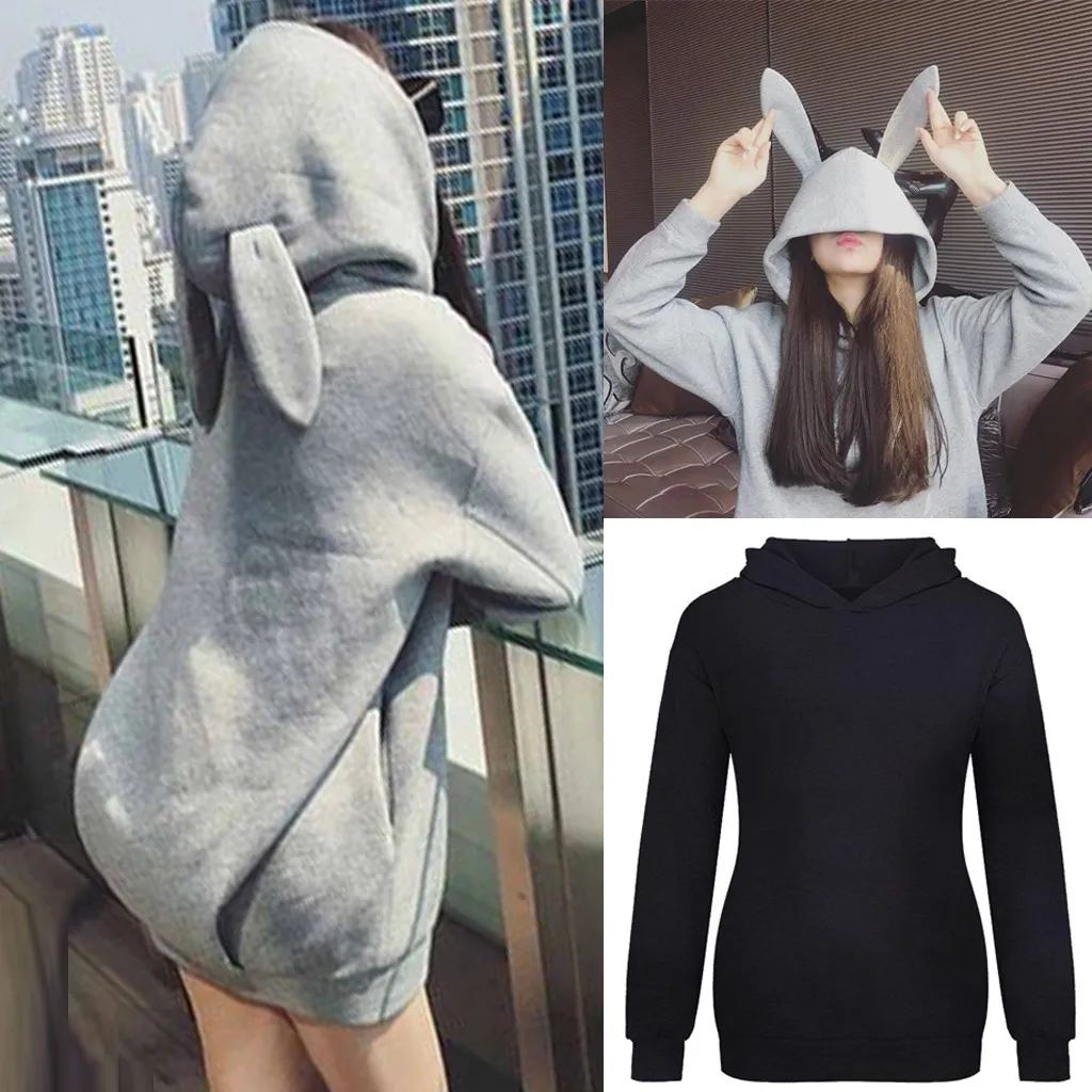 Fashion new Autumn Winter Thick Warm Coat Women Hoody Sweatshirt Cute Bunny Ears Pullover Casual Tops lady Loose Long Sleeve Top