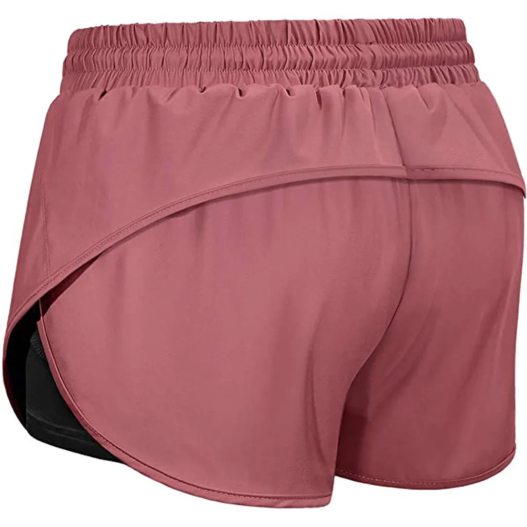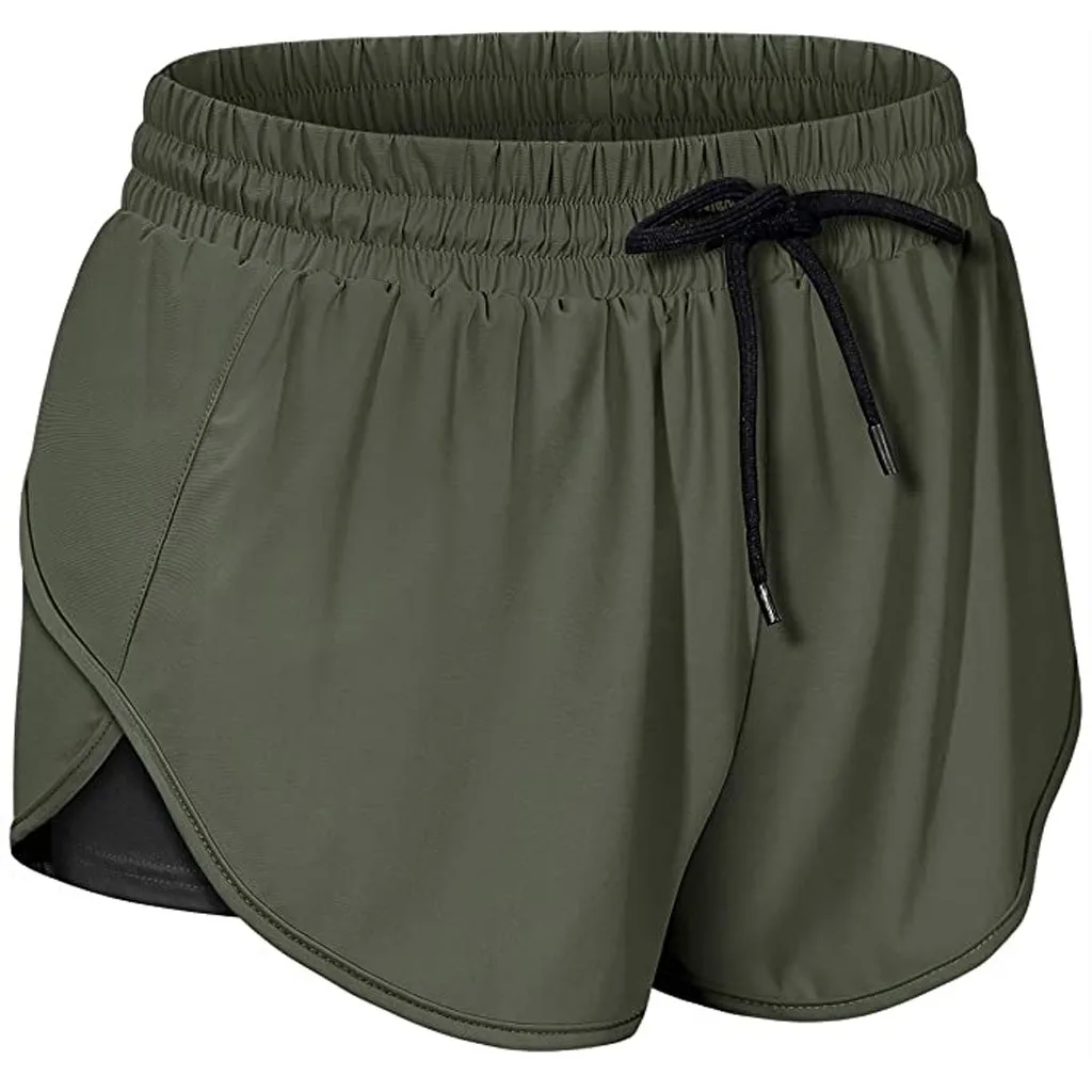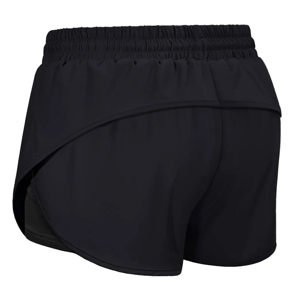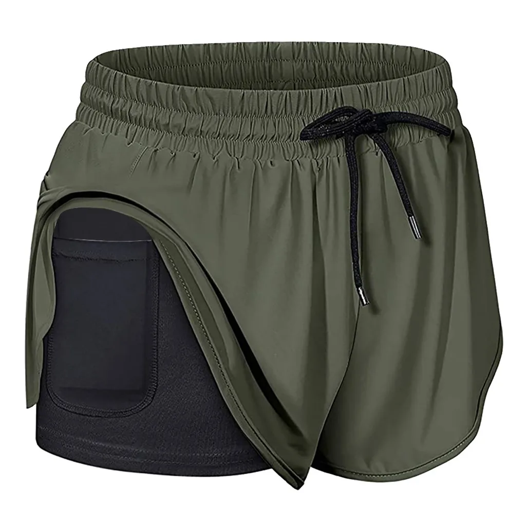 Шорты женские быстросохнущие с высокой талией, спортивные, для занятий йогой, бега, двухслойные, для фитнеса, тренировок, с карманом для телефона