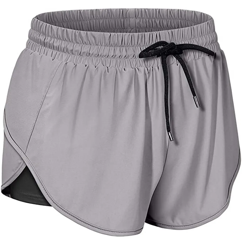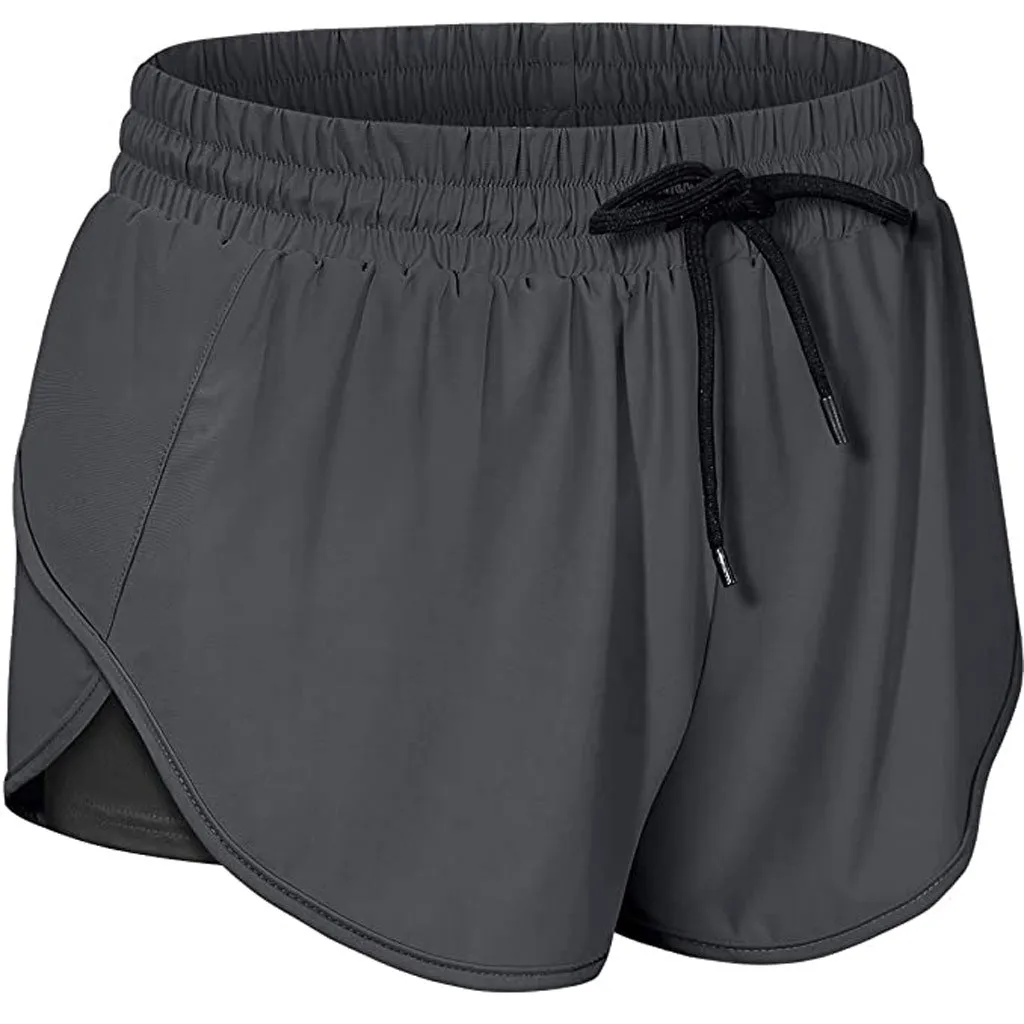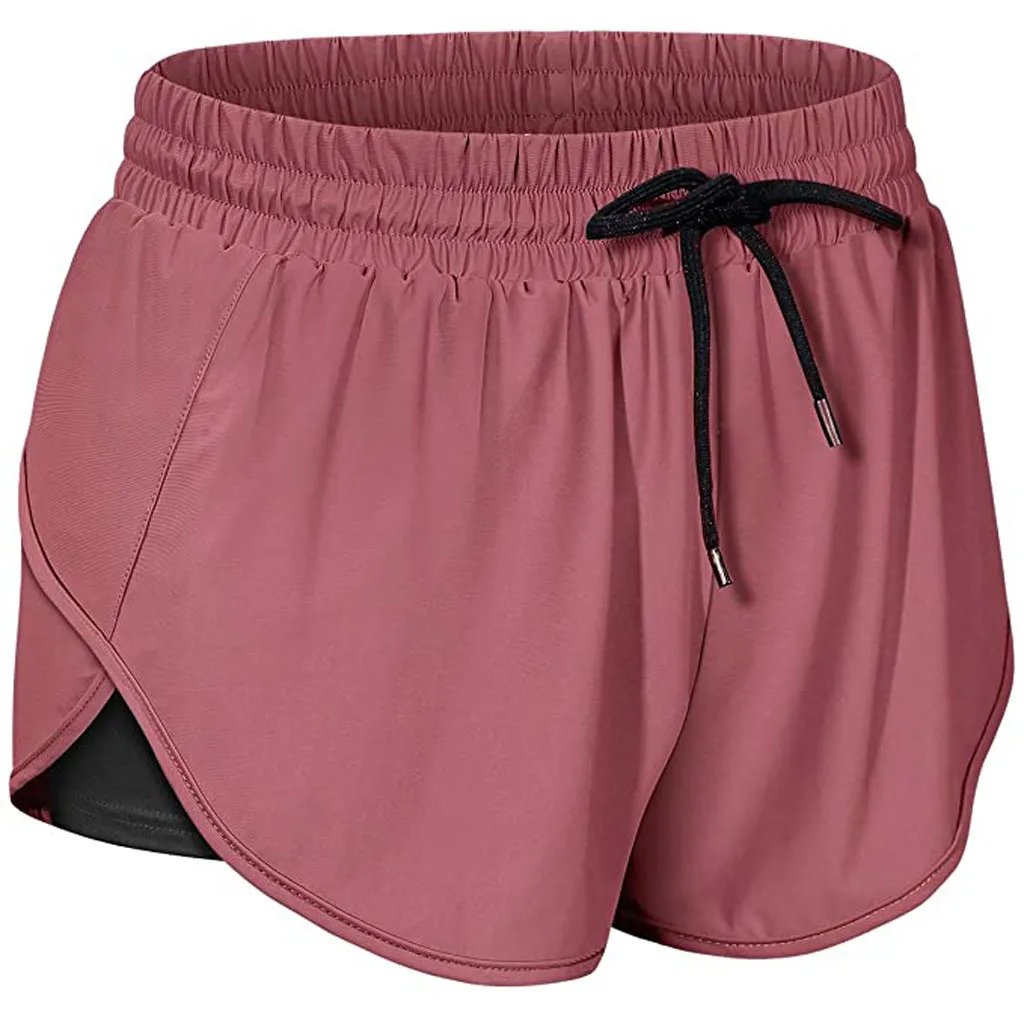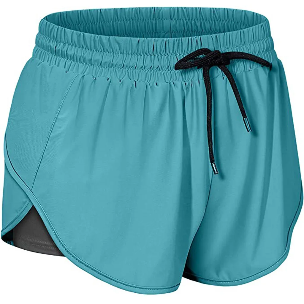 Шорты женские быстросохнущие с высокой талией, спортивные, для занятий йогой, бега, двухслойные, для фитнеса, тренировок, с карманом для телефона