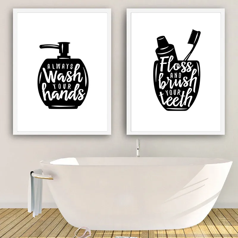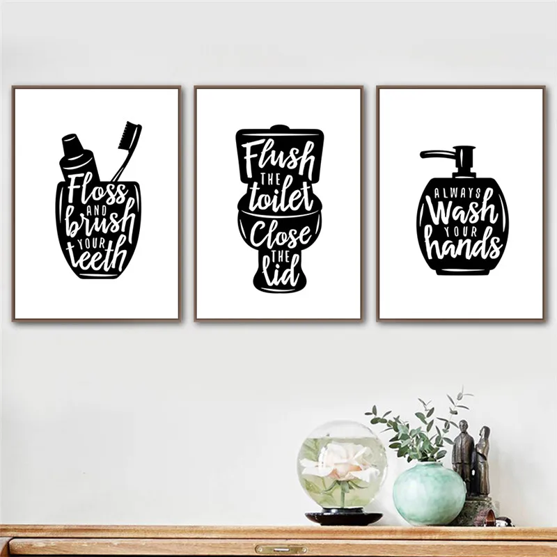 Зубная щетка Туалет кавычки смешные ванная комната стены искусства холст живопись скандинавские плакаты и принты настенные картинки для ванной комнаты YX212
