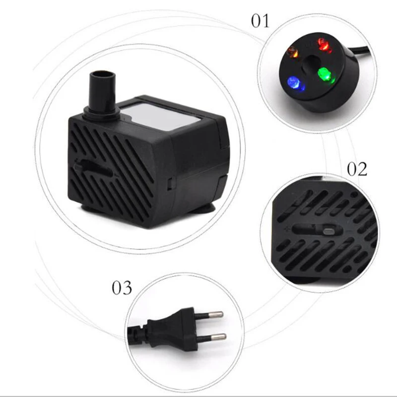 Погружные водяные насосы LBER 3 Вт с 4 светодиодный ными лампами, аквариумный фонтан, аквариумный пруд с европейской вилкой