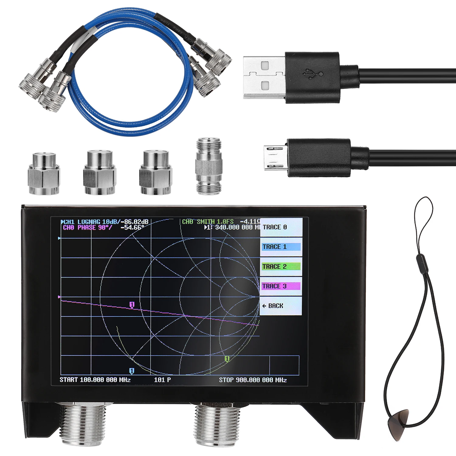 Векторный анализатор сети с диагональю 4,04,3 дюйма, параметры антенны, анализатор коротких волн HF VHF UHF, тестер с железным корпусом
