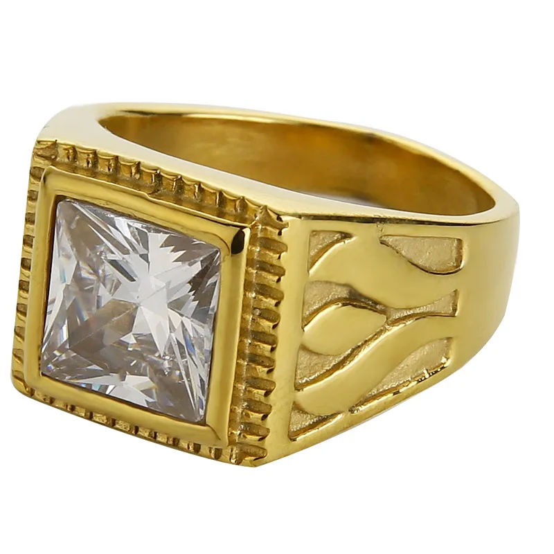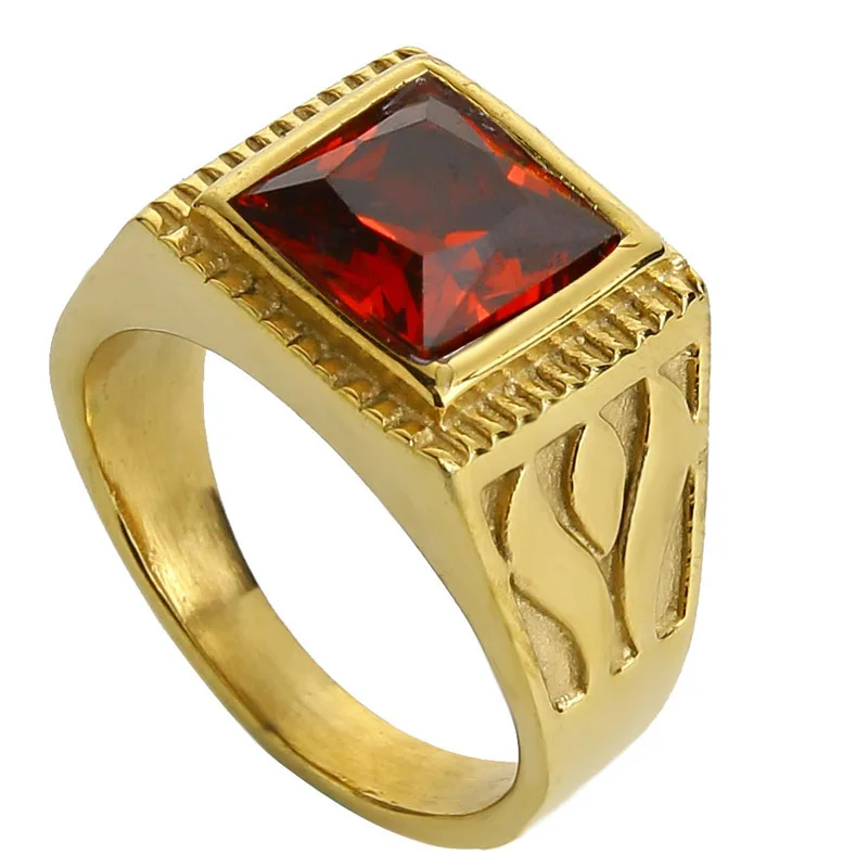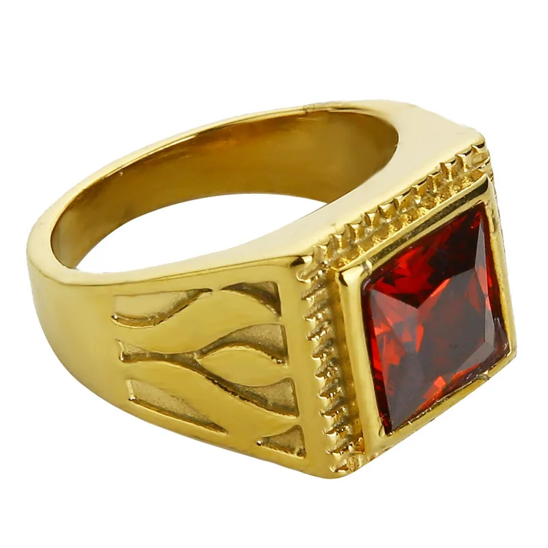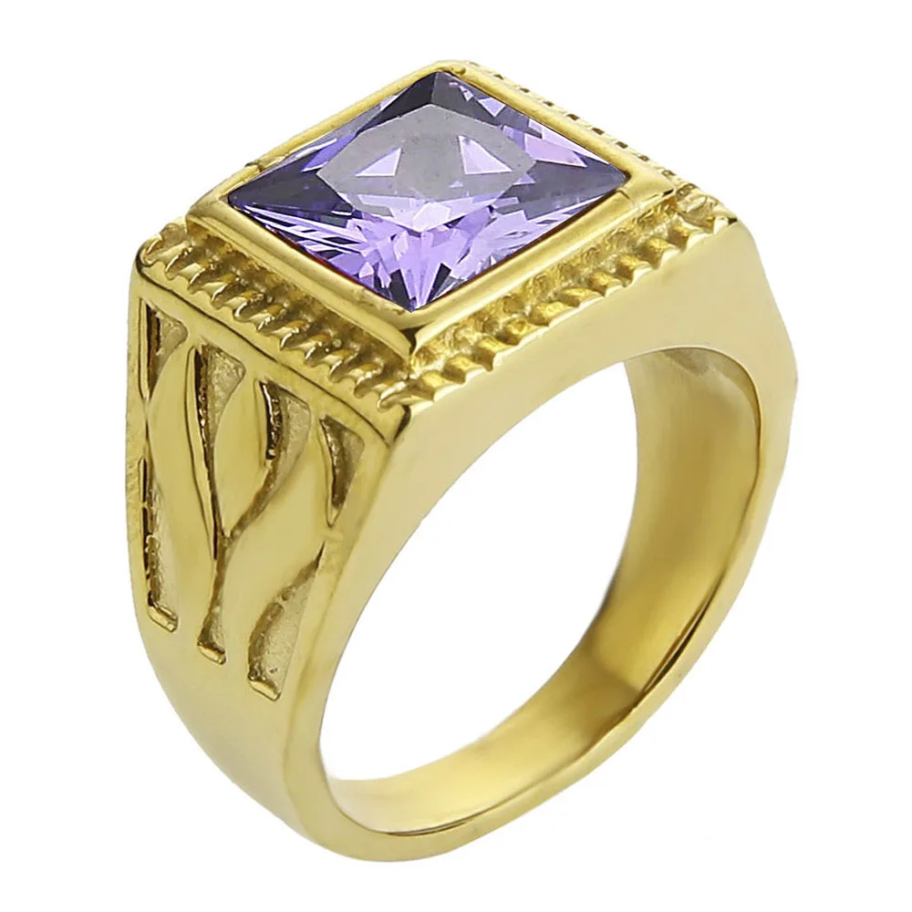Мужское пурпурное каменное кольцо EdgLiFu, квадратное кольцо из нержавеющей стали золотого цвета для мужчин и женщин
