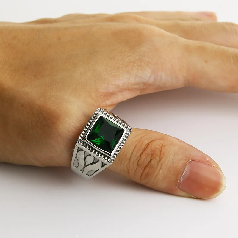 Мужское кольцо в готическом стиле, из нержавеющей стали, с зеленым ...
