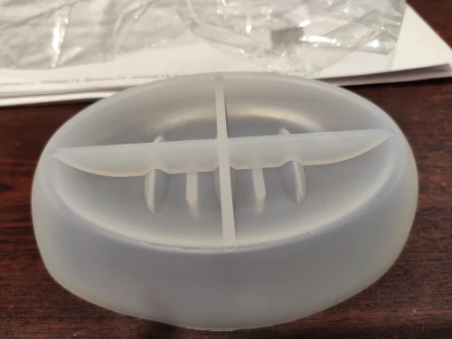 Силикон молда тонкий, молд пришёл мятый и не выправился до конца(. При заливке смолой приходится одну стенку молда "подпирать" чтобы она не была выпуклой.