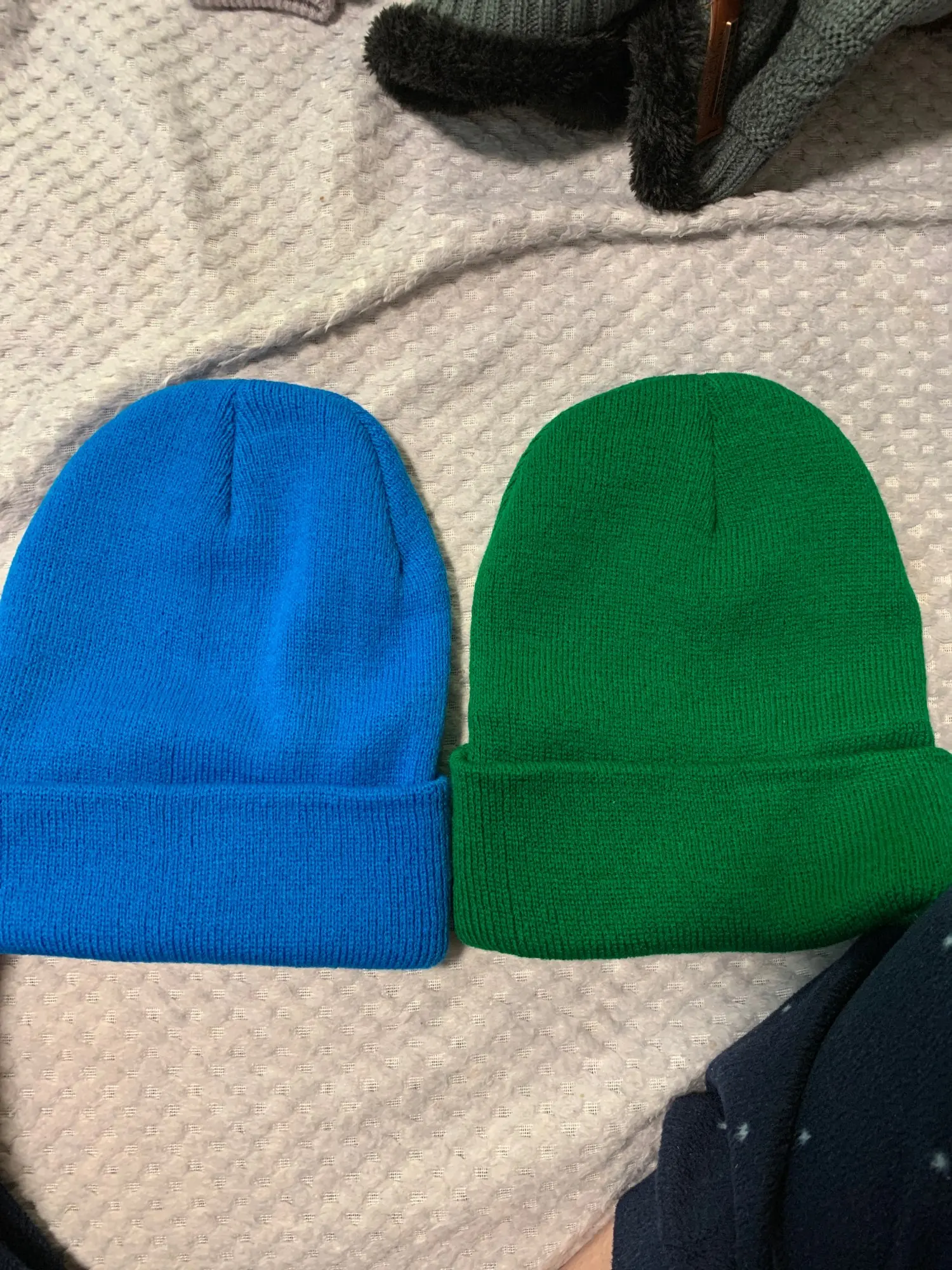 почти месяц в краснодарский край. шапки мягкие и яркие, но тонкие - зимой будет холодно.