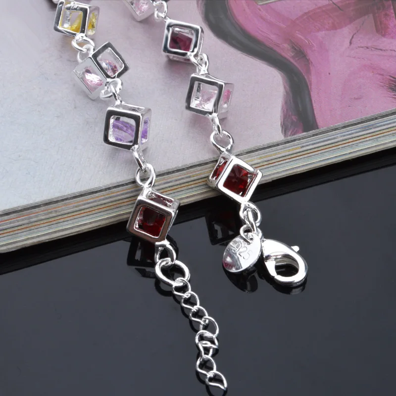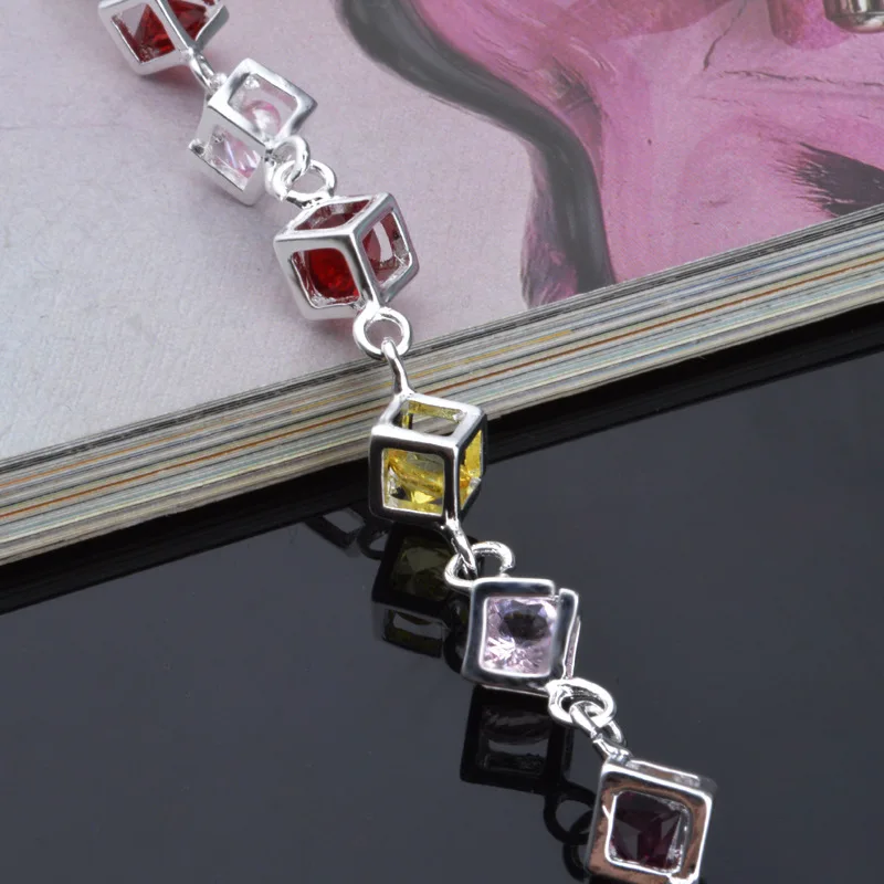 Модные ювелирные изделия из стерлингового серебра 925 пробы, браслет с кубическим цирконием, цветной женский ювелирный подарок