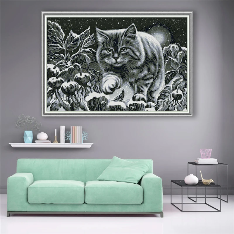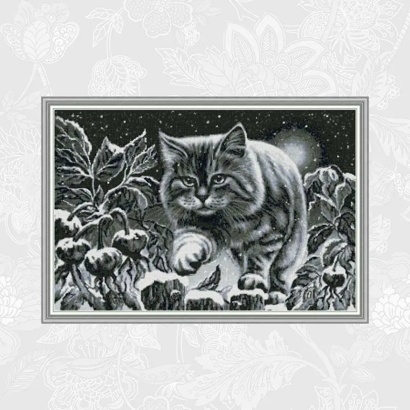 Черный кот в снежную ночь китайские наборы крестиков Счетный 11CT 14CT DIY рукоделие вышивка ручная работа Aida наборы крестиков