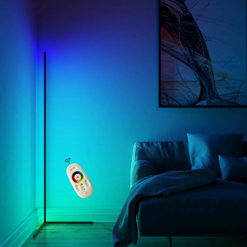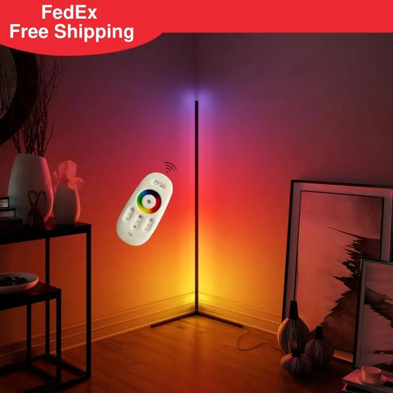 Светодиодный Угловой напольный светильник RGB с дистанционным управлением и управлением, стоячий светильник для современного офиса, спальни, украшения, теплый свет