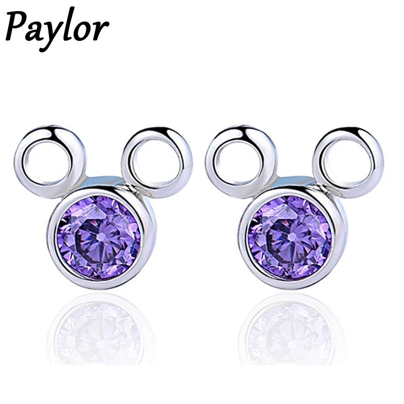 Paylor/модные милые серьги-гвоздики с Минни и кристаллами для женщин и девочек, блестящие серьги с фианитами в виде мышки, детские серьги-гвоздики
