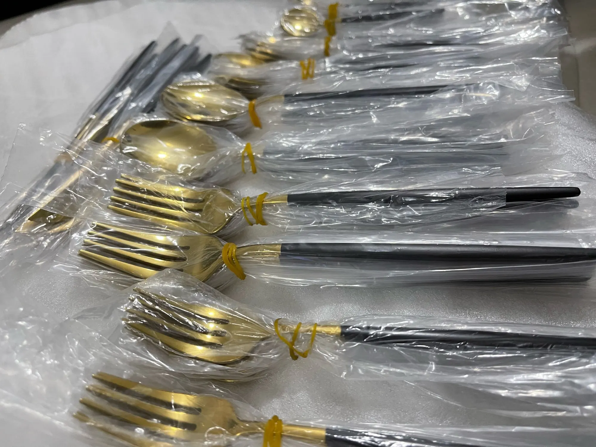Набор столовых приборов JANKNG из нержавеющей стали черного и золот...