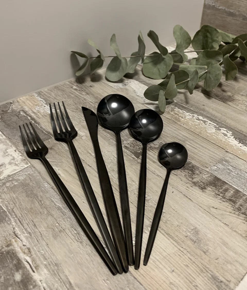 Набор столовых приборов из нержавеющей стали, черного цвета, 24 шт.