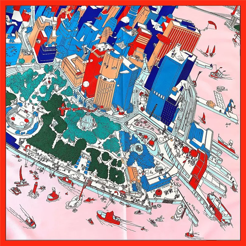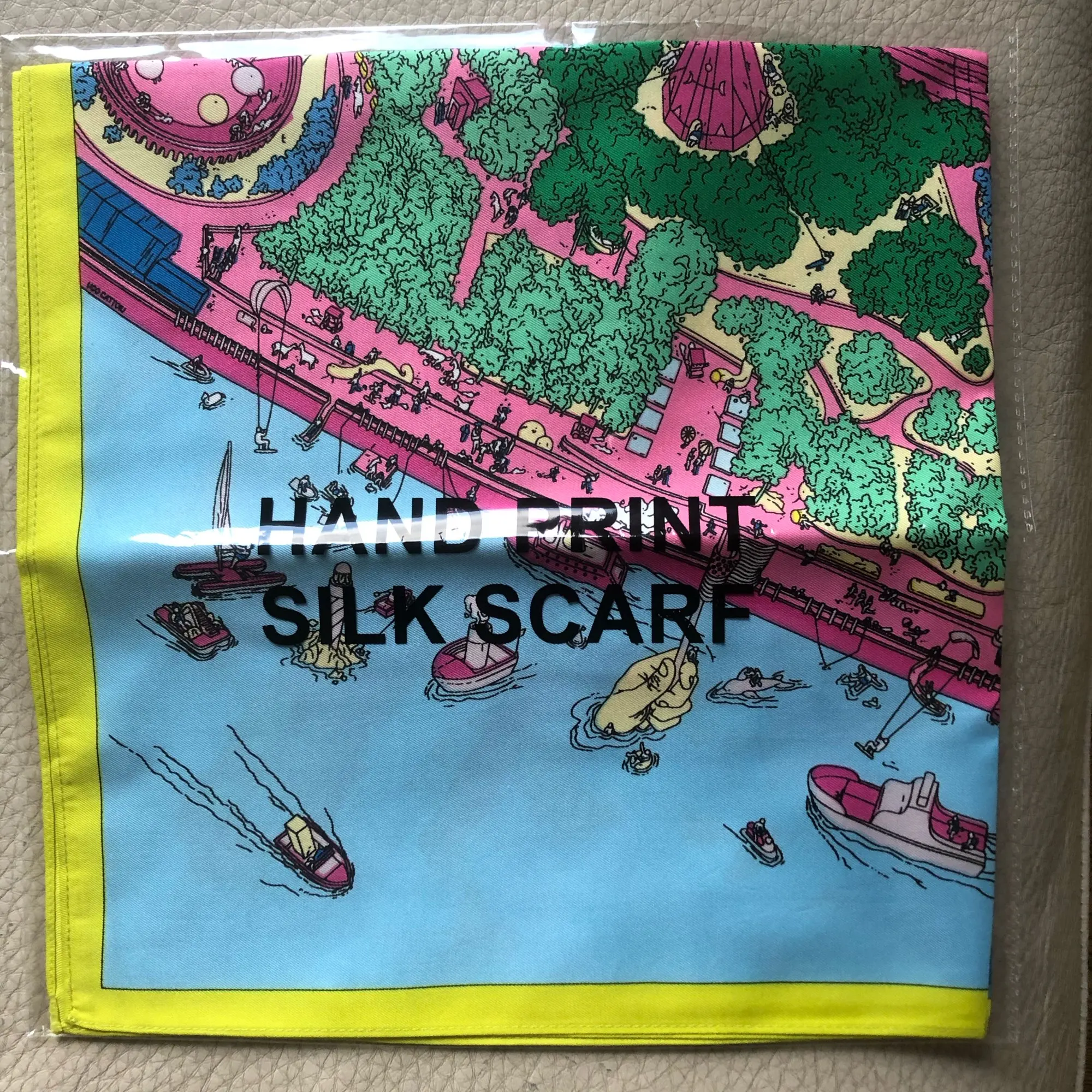 Женский саржевый шелковый шарф POBING, квадратные шарфы с принтом воды и города, бандана, маленький хиджаб, Женский Галстук, повязка на голову, шейный платок 53 см