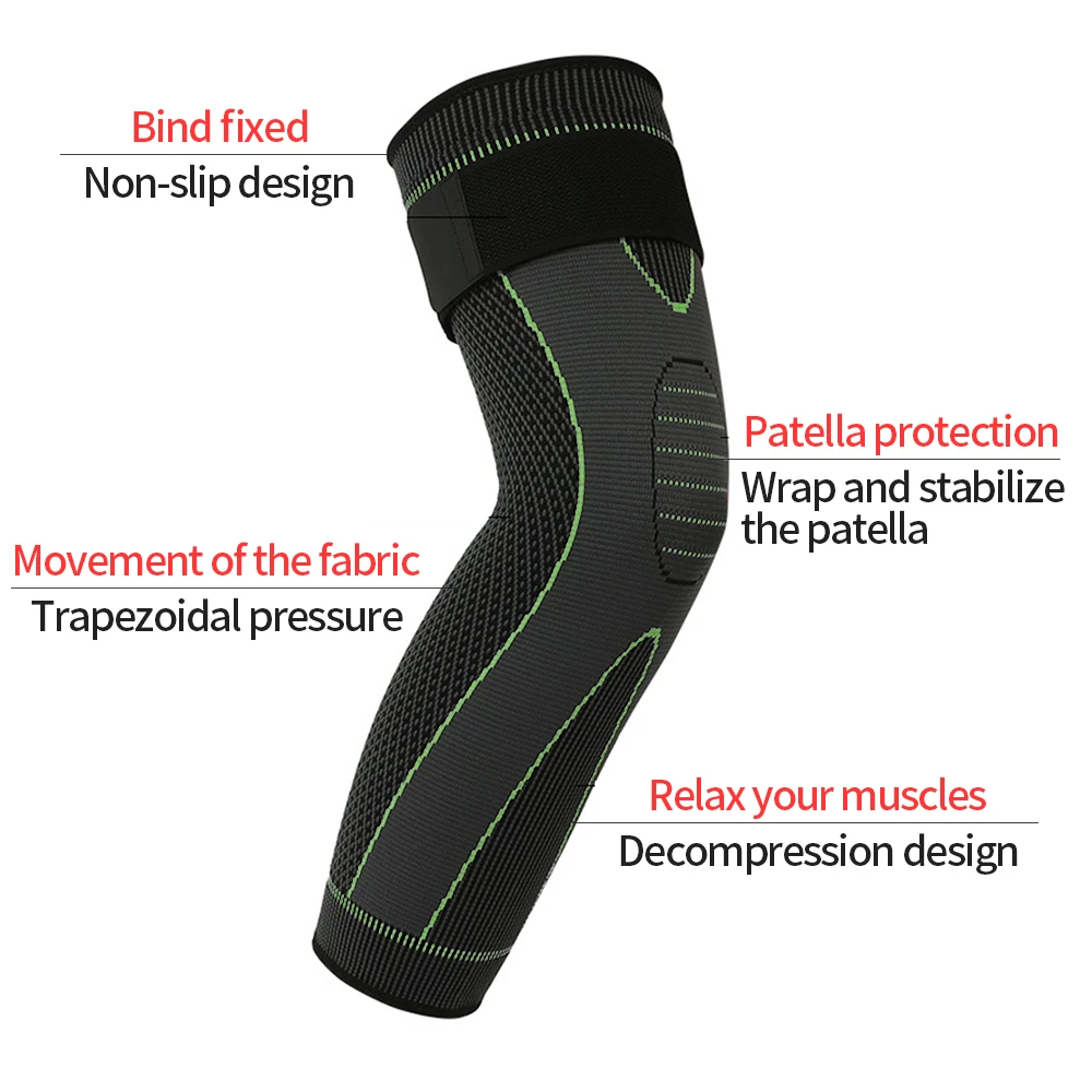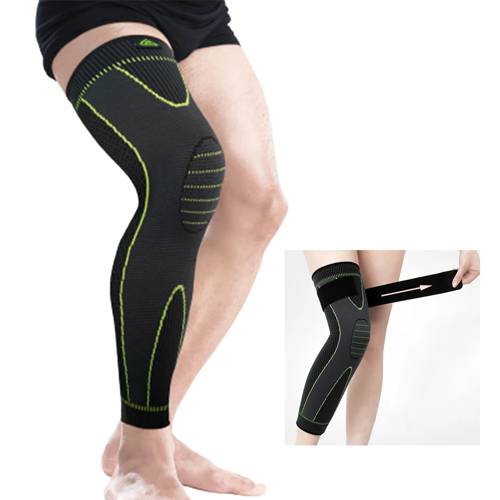Горячие эластичные желто-зеленые полосатые спортивные удлиненные наколенники с рукавом для ног Нескользящие бандажные компрессионные гетры для мужчин и женщин