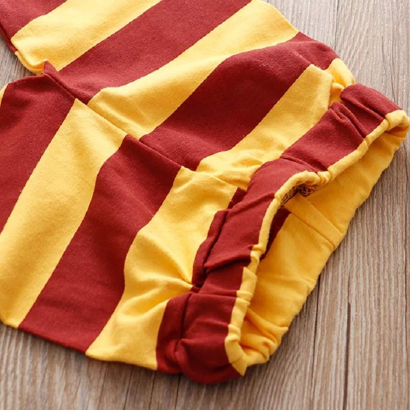 Комплект одежды для новорожденных, хлопковое боди с принтом, штаны в полоску, шапочка, на возраст 0-24 месяцев