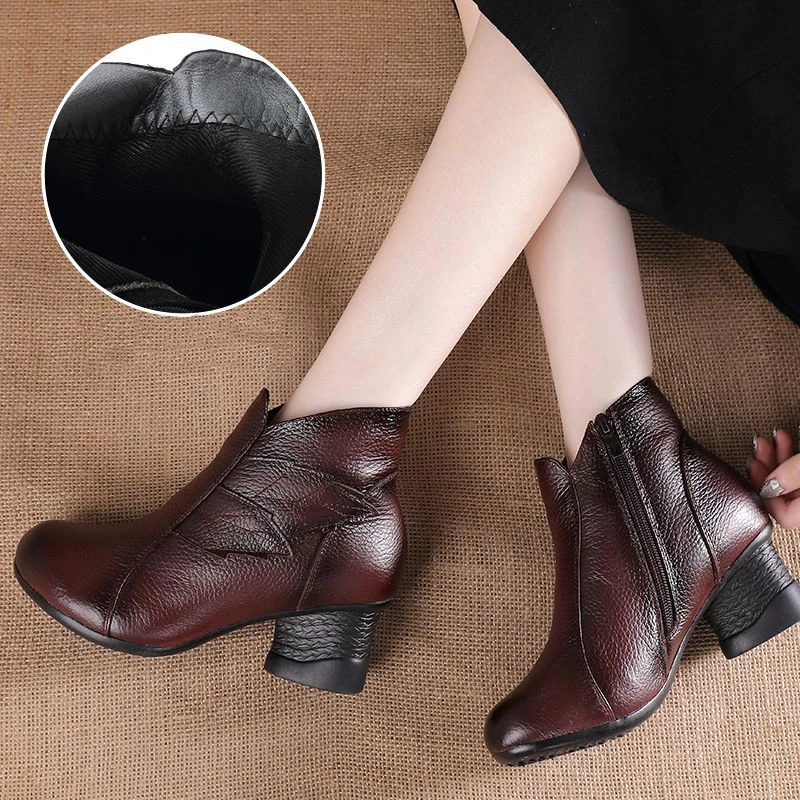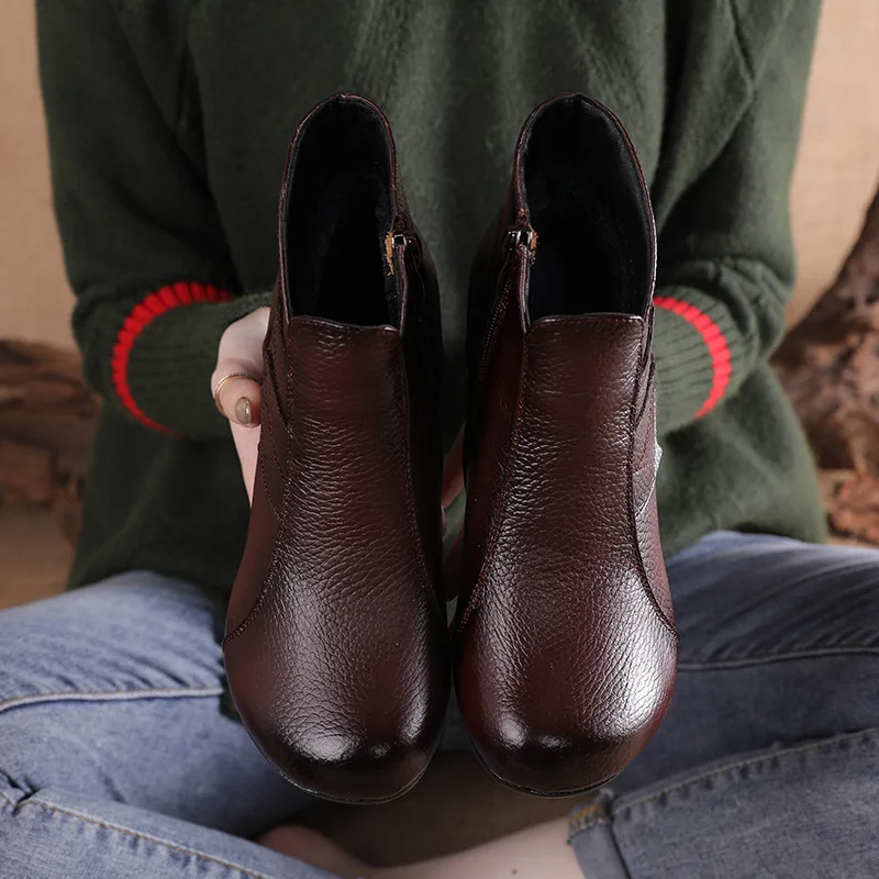 OUKAHUI Осенние Теплые винтажные ботильоны из натуральной кожи для ...