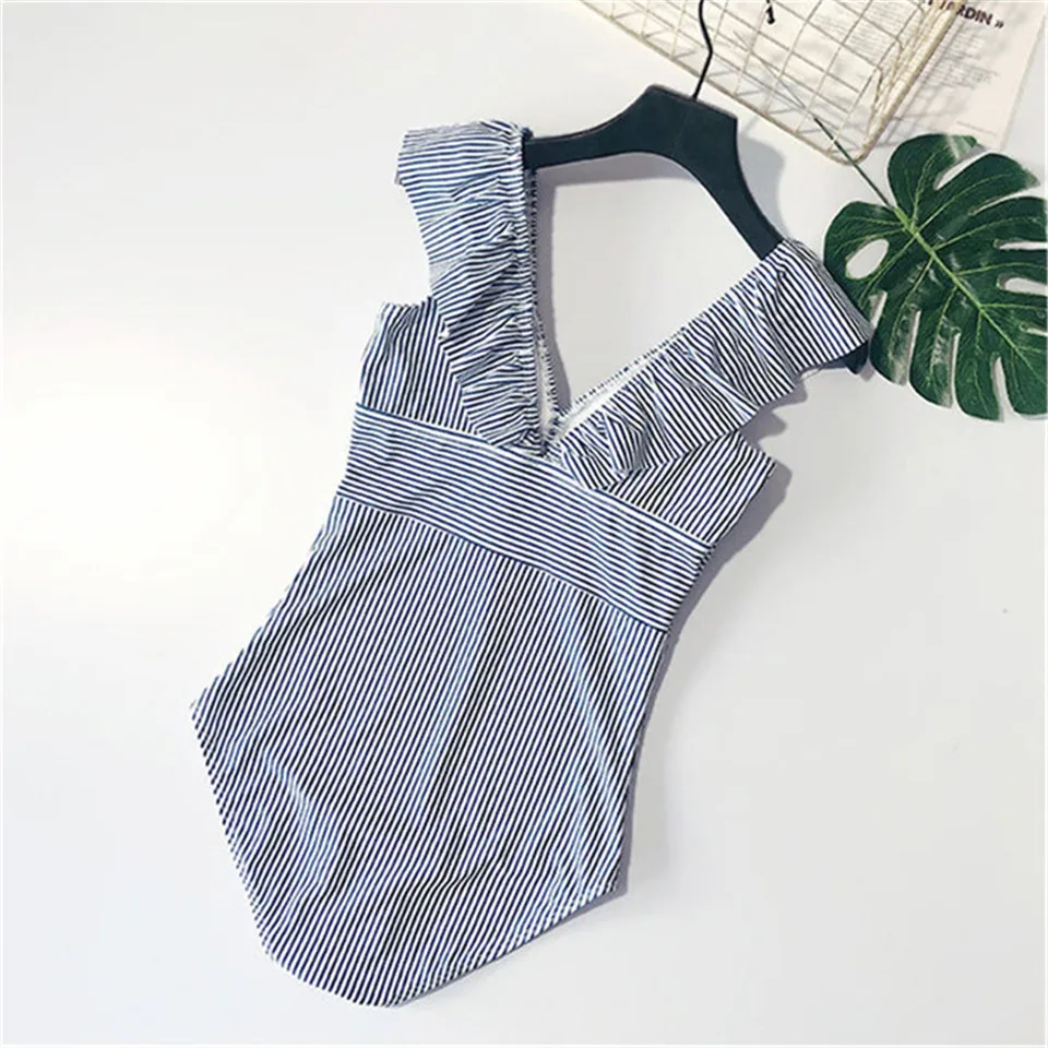 2021 пикантный слитный купальник пуш-ап купальники женские полосаты...