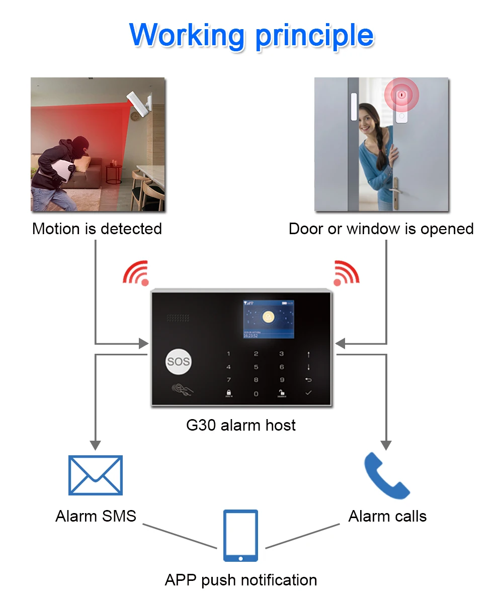 Система охранной сигнализации ZONAN G30 Tuya, Wi-Fi, управление через приложение, с IP-камерой, автоматический набор, детектор движения, беспроводной домашний умный Gsm Сигнализатор