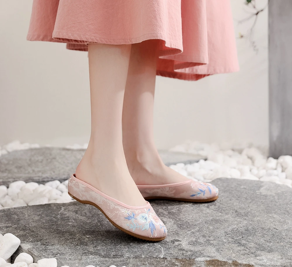 Шлепанцы женские из жаккардовой ткани, с вышивкой, в стиле ретро