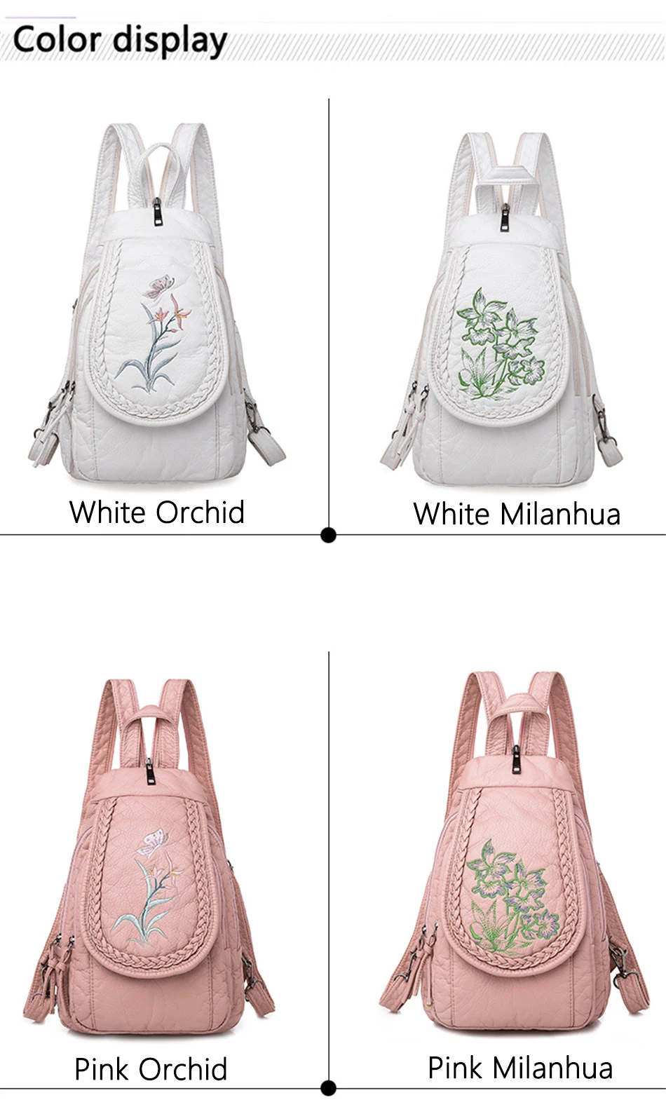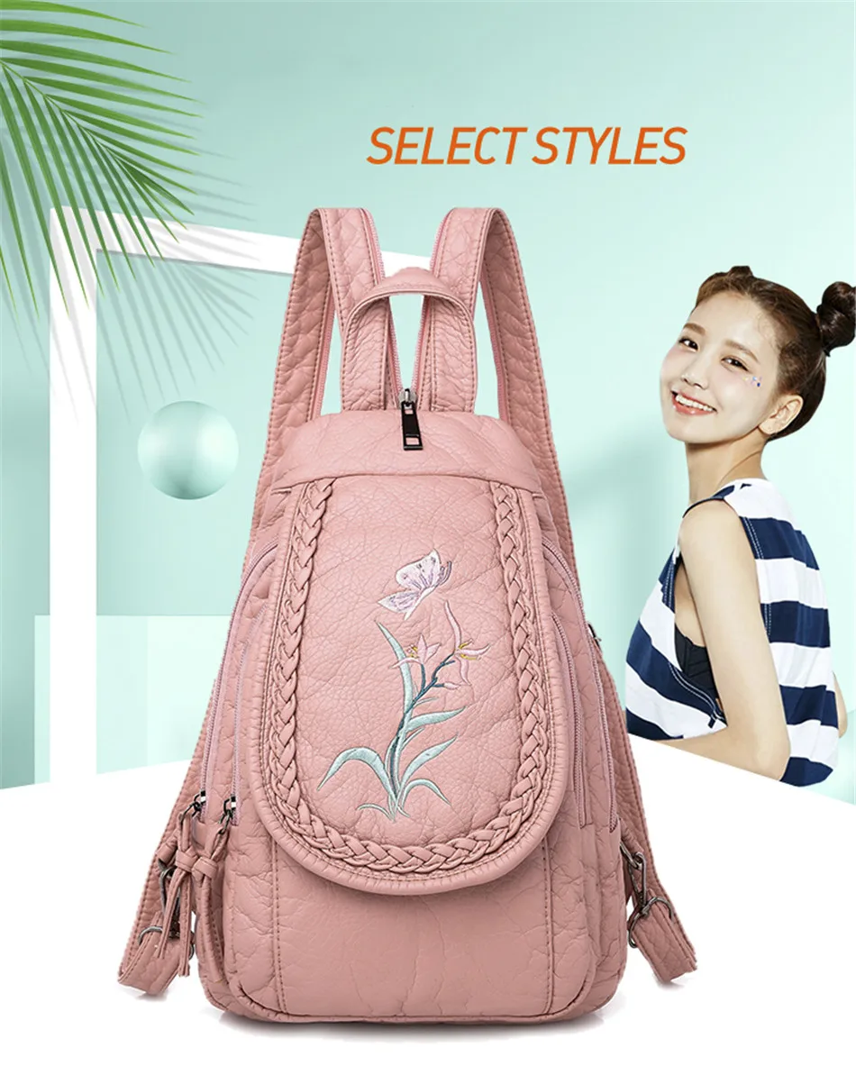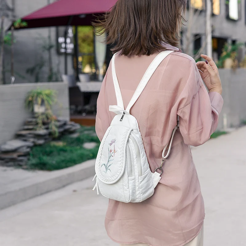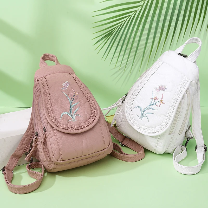 Новый Модный женский рюкзак с вышивкой Орхидея, Миланский цветок, кожаный женский рюкзак, легкий мягкий рюкзак для женщин