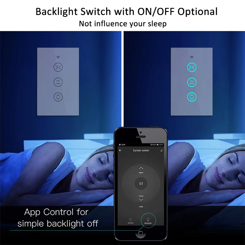 Wifi RF433 сенсорный смарт-штора переключатель Tuya Smart Life приложение голосовое Беспроводное дистанционное управление автоматический моторизованный рольставни штора мотор ЕС США стандартный настенный штор переключатель 2/3 способа работы с Amazon Alexa Echo Google Assistant Основные характеристики: 1. Мульти-контроль в гораздо более простой способ 2. Новый режим сопряжения с WiFi + Bluetooth 3. Возможность включения/выключения подсветки Особенности продукта: 1. Несколько функций: Легко преобразует вашу систему штор в умную с новым функциональным умным переключателем штор; Интеллектуальное управление рулонными жалюзи, шторы затвора гораздо проще с несколькими режимами управления: Управление приложением/сенсорное управление/Радиочастотный пульт дистанционного управления/Голосовое управление 2. 2/3 способ управления: Управление 1 рулонные жалюзи, занавес затвора с несколькими переключателями штор 3. Беспроводной пульт дистанционного управления: Управляйте устройствами с помощью смартфона через приложение smart Life или Tuya, где бы вы ни находились 4. Голосовое управление: Работа с Amazon Alexa или google assistant для голосового управления без использования рук 5. Широкое применение: Сочетаются с различными видами занавесок, такими как оконные жалюзи/рулонные жалюзи/рольставни. Установите умный переключатель штор во многих местах, таких как офис/кабинет/спальня/гостиная и т. д., даже Управляйте тентом во дворе. 6. Таймер и расписание: Возьмите полный контроль за подключенными приборами с таймером, расписанием и обратным отсчетом (1/5/30 минут, 1 час, с понедельника по воскресенье и т. д.) с приложением; Гораздо более простой режим сопряжения для добавления устройства с подключением Wi-Fi и Bluetooth Характеристики: