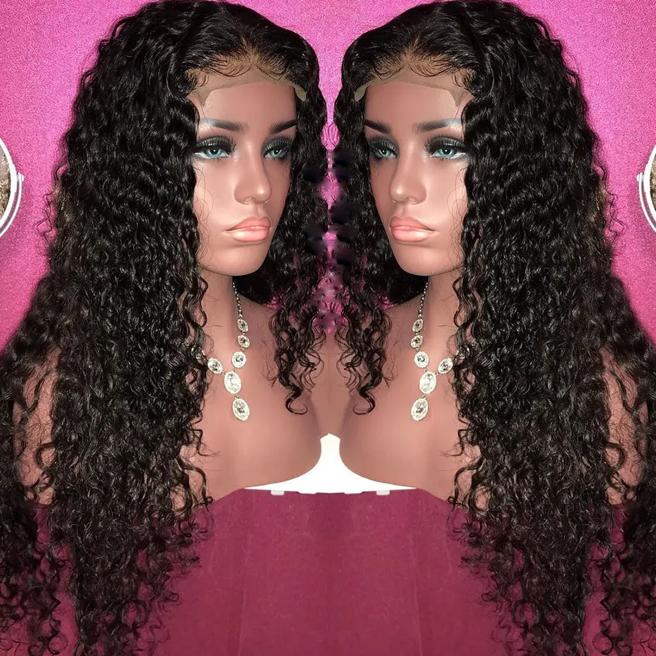 Парики из натуральных волнистых волос холодной волны, 4 х4, 150%, и...
