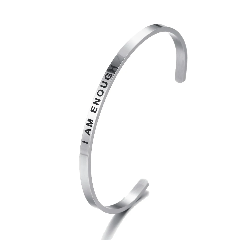 Браслеты из нержавеющей стали 316L с гравировкой Я достаточно, вдохновляющие браслеты с мантровыми мантрами и позитивными цитатами