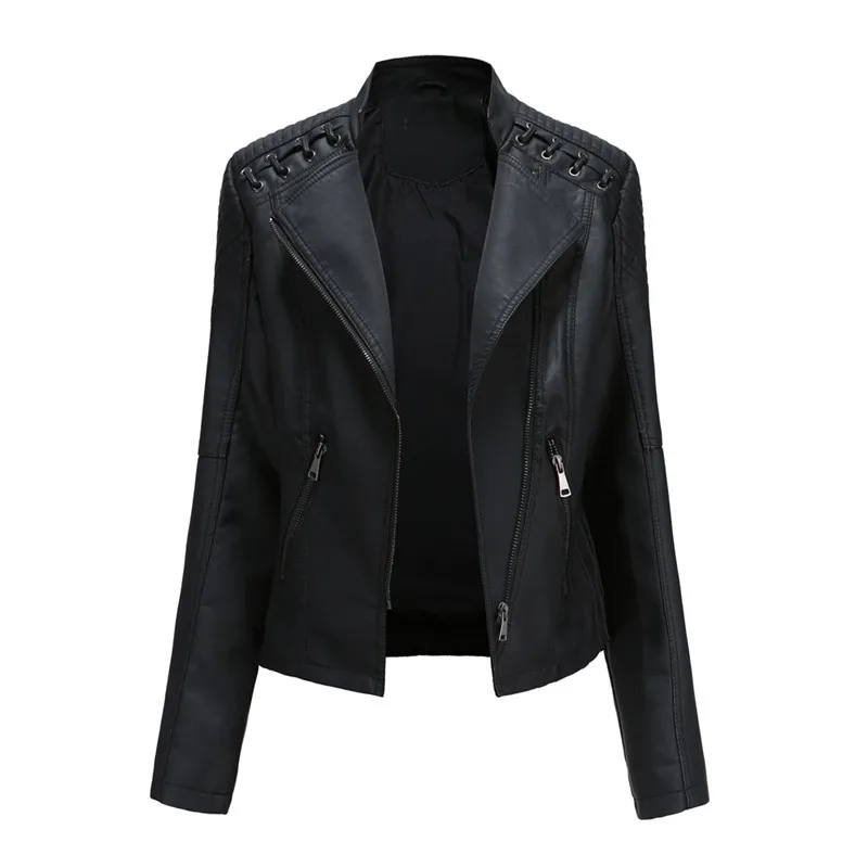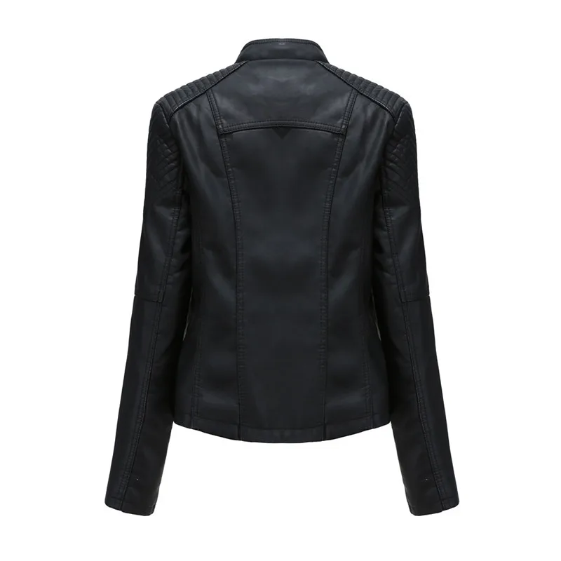 Куртка женская из искусственной кожи, на молнии, с воротником-стойкой